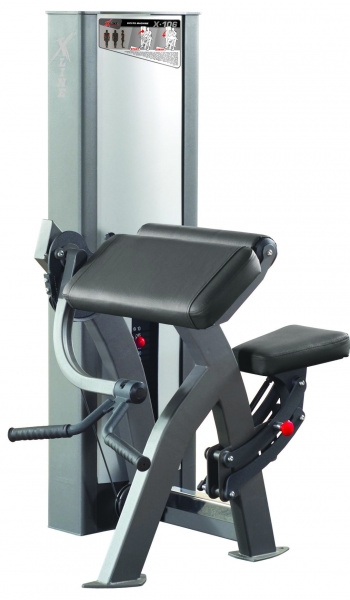 Біцепс-машина Xline відноситься до базових силових тренажерів, спрямована на опрацювання біцепсів рук. М'яка частина представлена м'яким наповнювачем і оббивкою з еко-шкіри. Важелі і рукоятки обертаються синхронно, наближаючи амплітуду до природних дій. Гумові накладки внизу рами тренажера усувають шум і вібрації, блокують ковзання обладнання по підлозі. Часті вправи благотворно позначаються на попереку, спинному відділі, вони покращують фізичну форму спортсменів. Подібний тип тренажера активно задіюється в програмі підготовки спортсменів різного рівня. Вантажний стейк обтягнутий спеціальним захистом, не шумить в процесі тренувань.