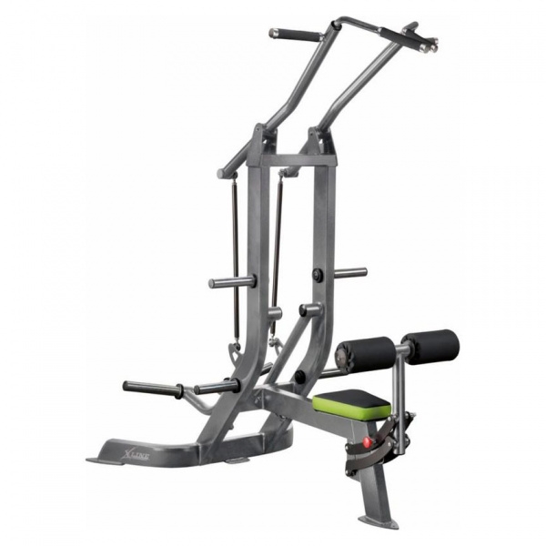 Тяга вниз Xline розроблена для спинного відділу, зміцнення м'язів і поліпшення рухливості суглобів. Як наповнення використовується двошаровий пінополіуретан високого класу, він стійкий до усадки і деформації. Заняття на тренажері спрямовані на збільшення ширини спини, формування атлетичної торса новачками і професійними атлетами. Регулювання висоти сидіння створює оптимальні умови для тренувань. Модель пофарбована порошковим складом зі спеціальним електростатичним напиленням, виконана з міцної сталі, витримує 2х125 кг навантаження. Пристрій полегшено старту зберігає зв'язки і суглоби від травм і розтягувань.