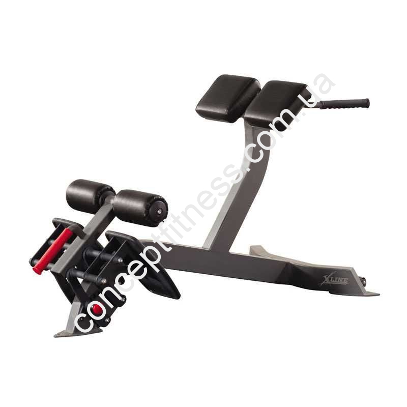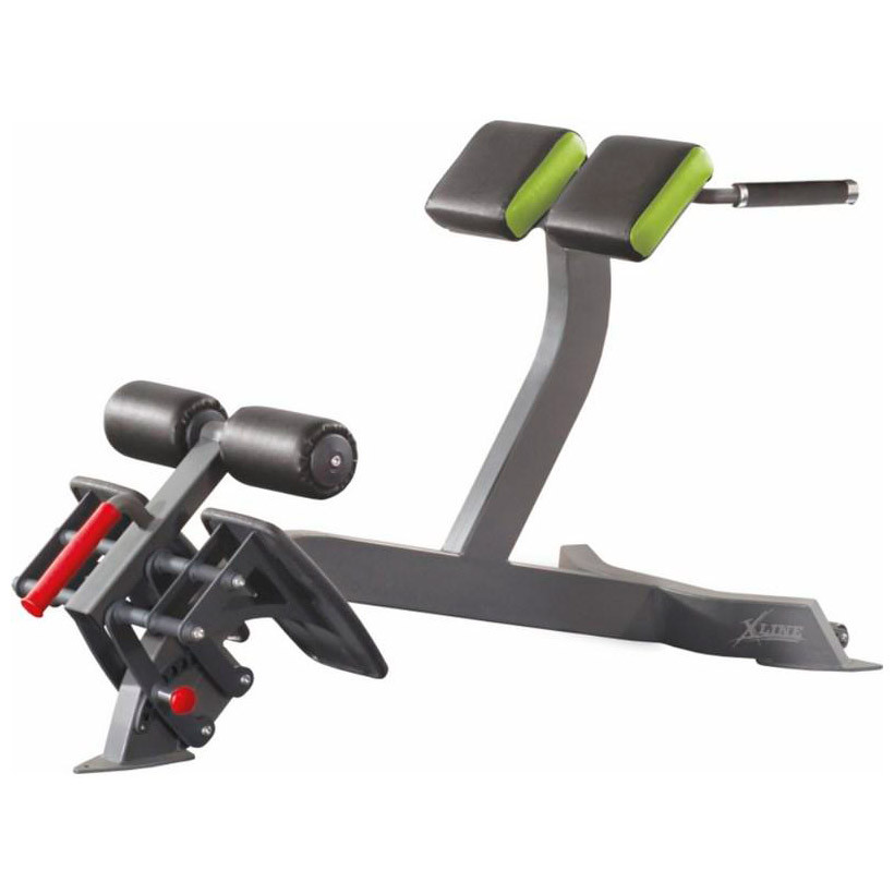 Гіперекстензія (кут 45 градусів) X-line X /XR313 підходить для згинання та розгинання спини, підняття амплітуди м'язового корсету і поліпшення роботи вестибулярного апарату. В ролі наповнювача задіяли спінений поліуретан, який не піддається усадці і різним видам деформації. Устаткування оснащується подушечками, роликами для транспортування і амортизуючими накладками внизу тренажера. Конструктивні особливості лави дозволяють її експлуатувати протягом 12 годин на добу.