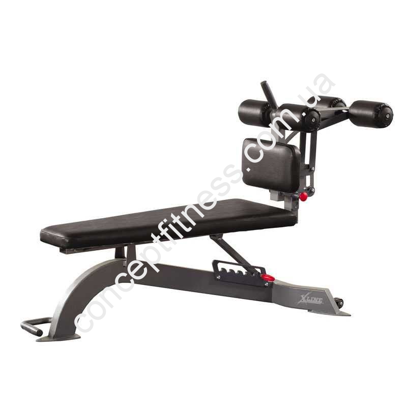 Лава для преса Х-Лайн від Інтератлетика артикул X /XR321 прекрасно підходить для домашніх вправ і використання в умовах залу. М'які частини обтягнуті вологостійким шкірзамінником. Наявність валиків гарантує не тільки комфорт, можливість відрегулювати положення тіла, але і повну безпеку. Посилена конструкція з нержавіючої сталі додатково покрита порошковою емаллю з електростатичним напиленіем.