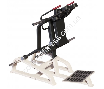 Гак машина Verti V203 підійде для вправ ndash; присідання, тренує стегна, сідниці і ікри. Механічний стопор відповідає за повну безпеку під час виконання вправ. М'які частини оббиті з вологостійкого і якісного шкірозамінника. Модель максимально залучає до роботи стегна, а опорна платформа в рази полегшують тренувальний процес. Наповнювачем виступає щільний і спінений поліуретан хорошої якості, який не піддається усадці і деформації.