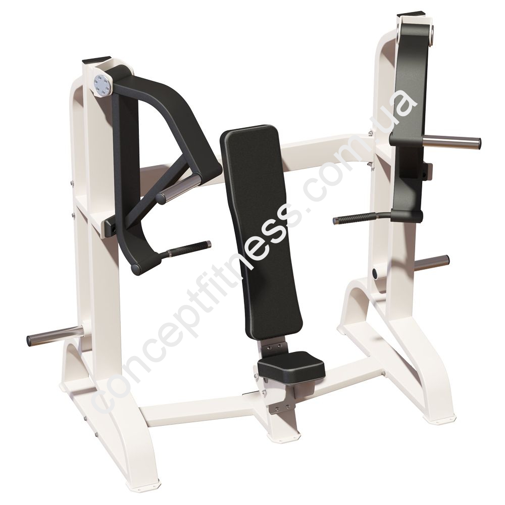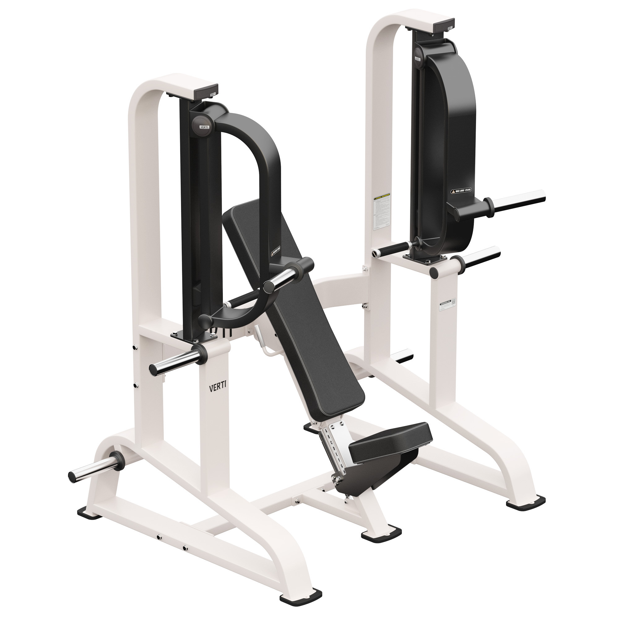 Жим горизонтальний Verti V207 прокачує нижній, середній і зовнішній відділи м'язи грудей. Навантаження на мускулатуру, суглоби і зв'язки відбувається власною вагою спортсмена, які можна регулювати додаючи або віднімаючи диски. М'які частини оббиті з вологостійкого і якісного шкірозамінника. На рамну конструкцію поширюється довічна гарантія. Наявність додаткових штирів для млинців створюють потрібний рівень опору і дозволяють швидкі накачати м'язи.