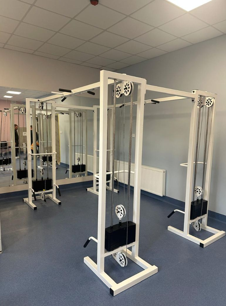 Силова станція ІнтерАтлетікЖім від Інтератлетика, артикул TB004-70 підійде для широкої аудиторії користувачів, на ньому може тренуватися одночасно кілька людей і кожен при цьому залишається в русі. До верхньої частини обладнання фіксують еспандери, також задіють в парі з гімнастичними снарядами, балансиром і балансування подушкою. Рама з стали забарвлена полімерною фарбою з електростатичним напиленням. Вага вантажного блоку легко регулюється універсальним штирем. Вплив на м'язи і суглоби виявляється власною вагою або обтяженням. Робота блоків відбувається плавно і без ривків, що впливає на розтягування області спини, зміцнення дрібних і великих мишц.