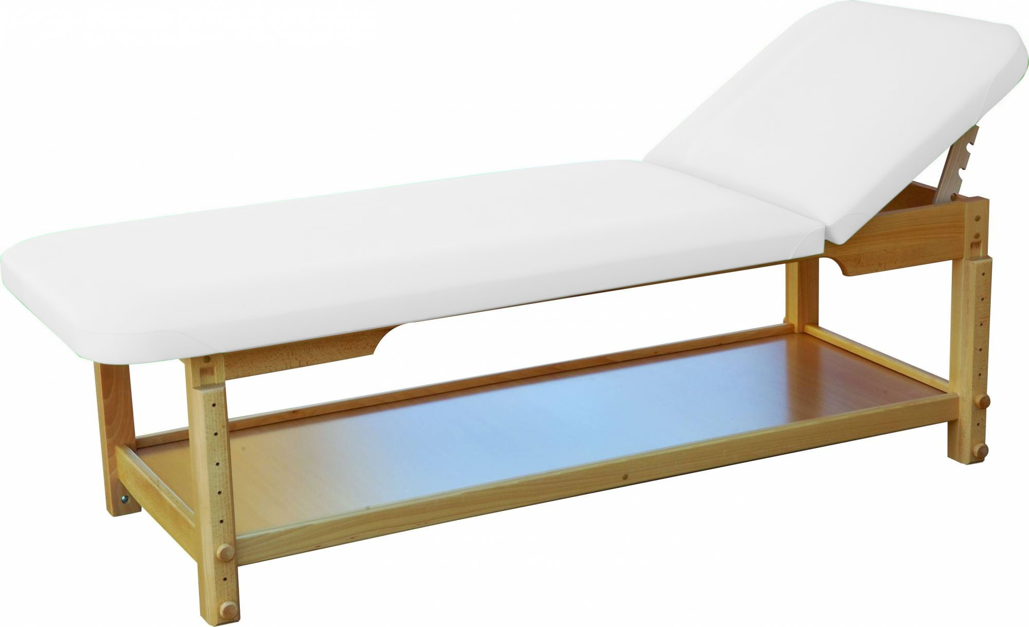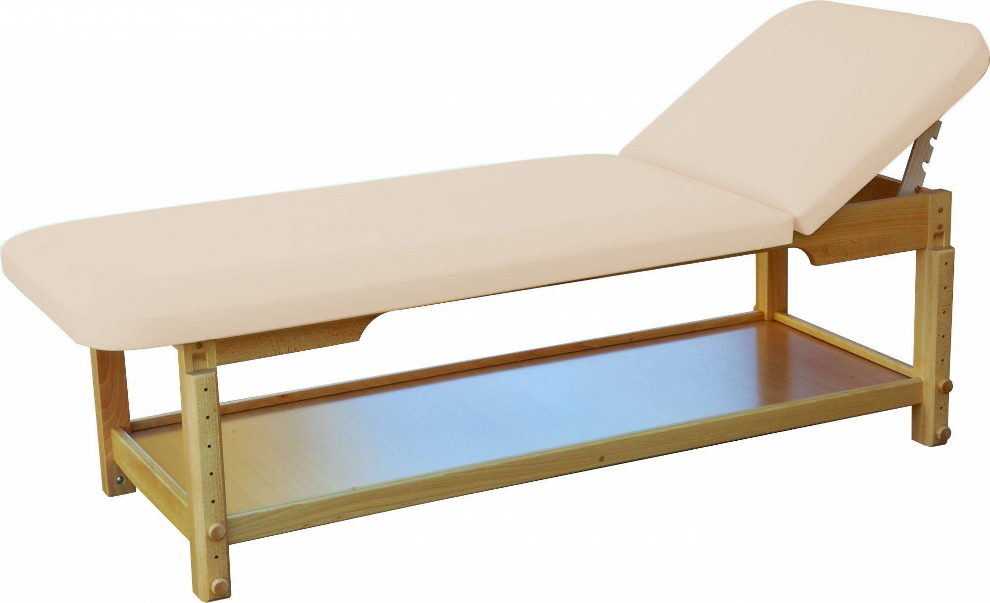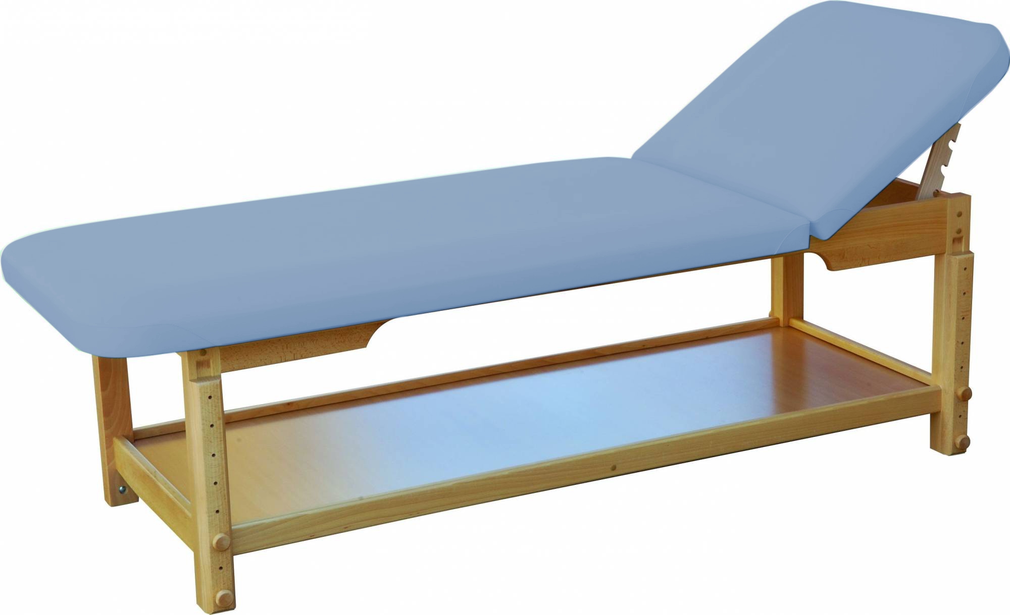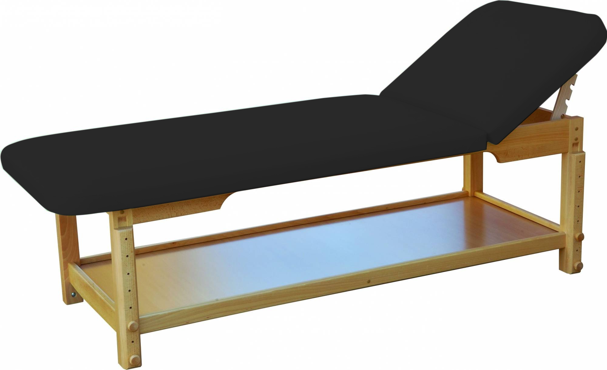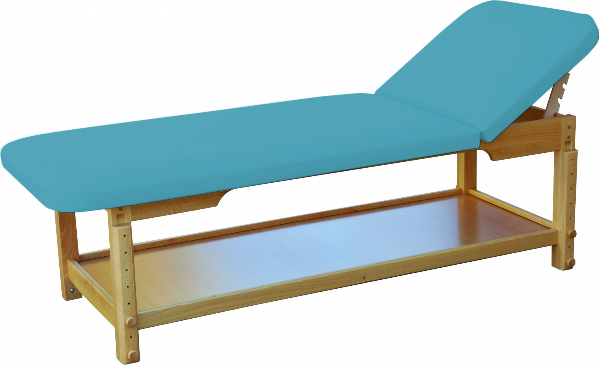 Кушетка масажна стаціонарна Statix-2 виготовлена з натурального бука, представлена українським виробником БМС. Колірна палітра обладнання представлена в різних відтінках. Верх обтягнутий якісним, медичним шкірзамінником, ПВХ. Бук не боїться вологи, покритий спеціальним лаком, не втрачає зовнішній вигляд через тривалий час. Внизу є поличка для зберігання різних аксесуарів, включаючи масла, рушники.
