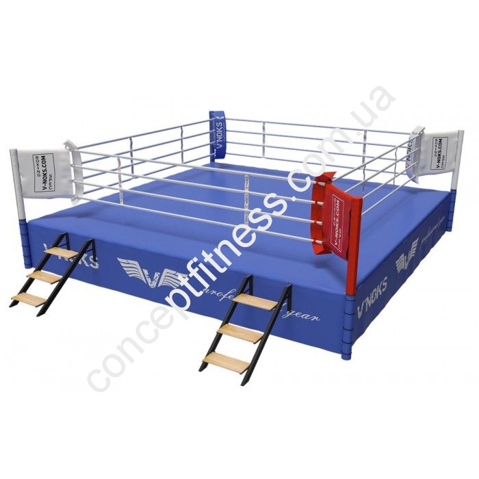 Ринг для боксу Vrsquo; Noks Competetion 7,5х7,5х1 м створено для групових та індивідуальних занять, дружніх спаринг-боїв і проведення змагань різного рівня. Наявність бічних подушок знижує появу саден, гематом і інших травм. Ринг, поміст і сходи виконані з надійних матеріалів, включаючи фанеру, метал, пвх. Для зручності тренувань ринг оснащується приставними сходами. Модель легко збирається, розбирається і перевозиться в місце призначення.
