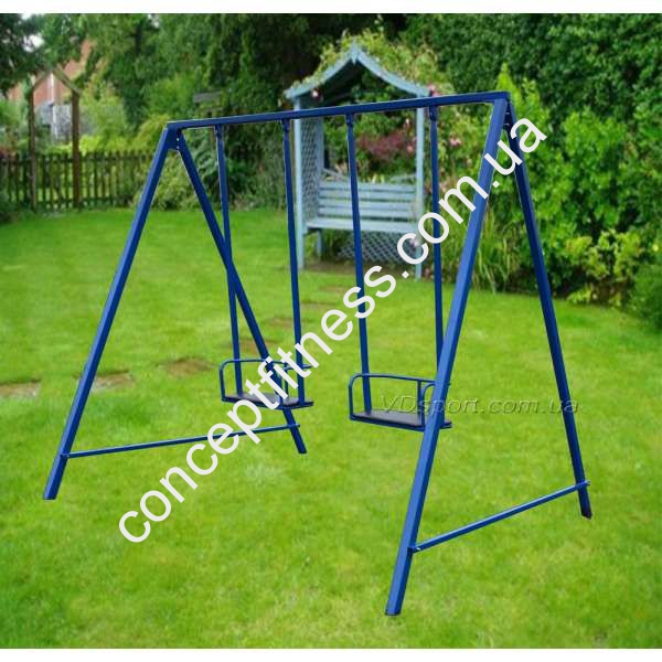 Дитяче вуличне обладнання ВД-Спорт вміщує двох користувачів, монтується шляхом бетонування 4-х стійок. Каркас забарвлений спеціальним складом, на вибір в синій, зелений або жовтий колір. Гойдалка часто встановлюється на присадибних ділянках, окремих майданчиках перед багатоквартирними будинками, дачах, пансіонатах та дитячих таборах.