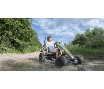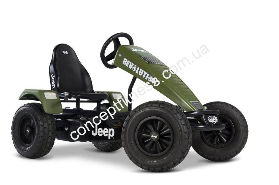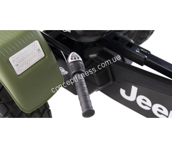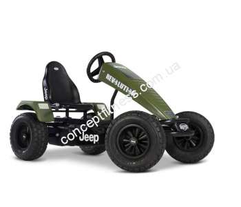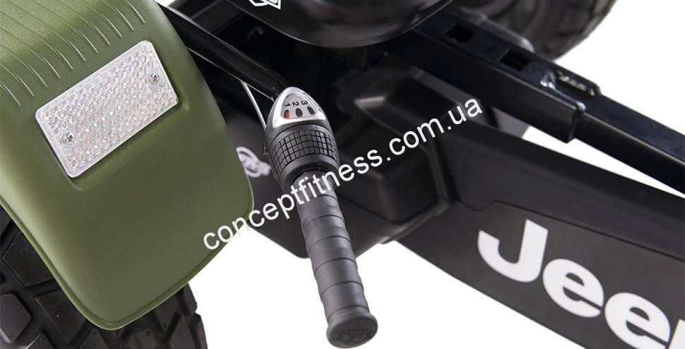 Веломобіль Berg Jeep Revolution BFR-3 07.21.06.00 обладнаний спеціальним приводом, який дозволяє гальмувати педалями. З таким транспортом все сім'я може весело провести час, подарувати дитині незабутні емоції, зміцнити молодий організм. Підвіска стійка на будь-якій поверхні, повністю виключений крен при входженні в повороти. Сидіння за дві секунди регулюється під зріст користувача. Шини оптимального діаметра створені для гірських баталій. Веломобіль можна дооснастити додатковим сидінням, крилами, спойлерами і створити власний прототип.