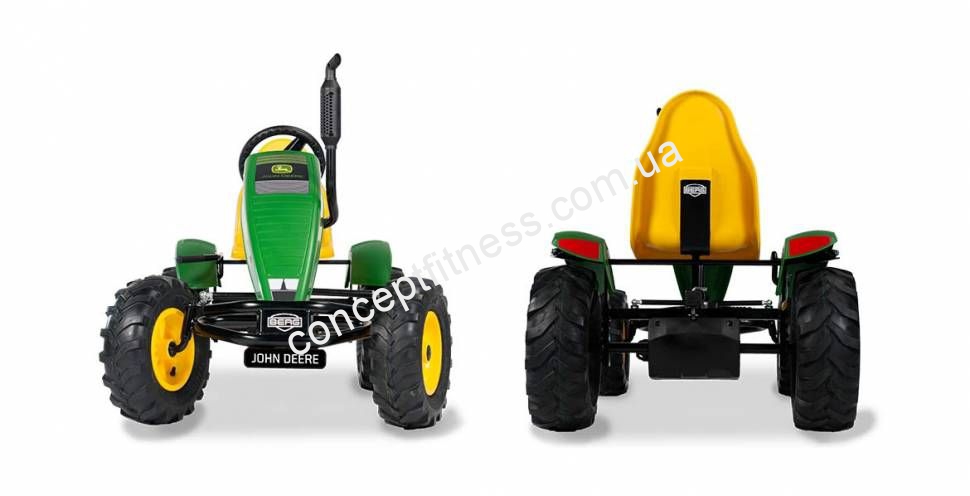 Веломобілі тракторної серії випускаються за оригінальною ліцензії та дизайну, погодженим з виробниками вищеперелічених брендів. Вражаючі шини з тракторним протектором і вихлопна труба надають дивовижну схожість зі справжнім трактором!