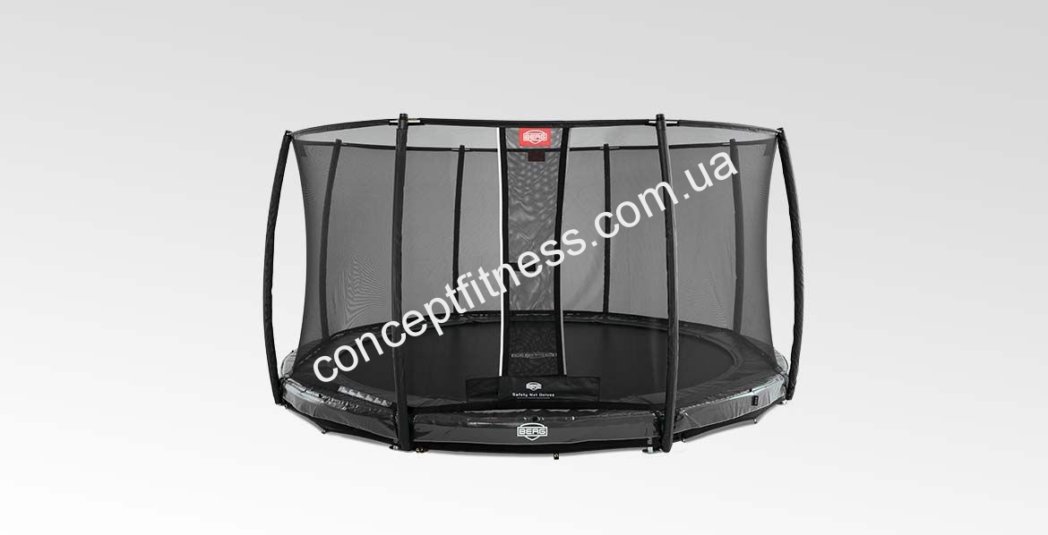 Універсальне обладнання Берг ІнГраунд Еліті Грей 330, артикул 37.91.03.00 оснащується еластичними пружинами, стрибаючим матом. Зносостійка тканина моделі стійка до прямих сонячних променів і дощовій погоді. Краї обладнання, де розташовані пружини, закриті спеціальними матами, це гарантує додаткову безпеку під час стрибків. На такому батуті можна весело і з користю провести вільний час. Регулярні стрибки на такому обладнанні нормалізують роботу вестибулярного апарату, серцебиття і дихання, надаючи вплив на поперек, м'язи черевного преса, ікри, стегна і сідниці. Модель підійде в якості тренажера, тут можна скинути зайву вагу і знайти довгоочікувану фігуру.