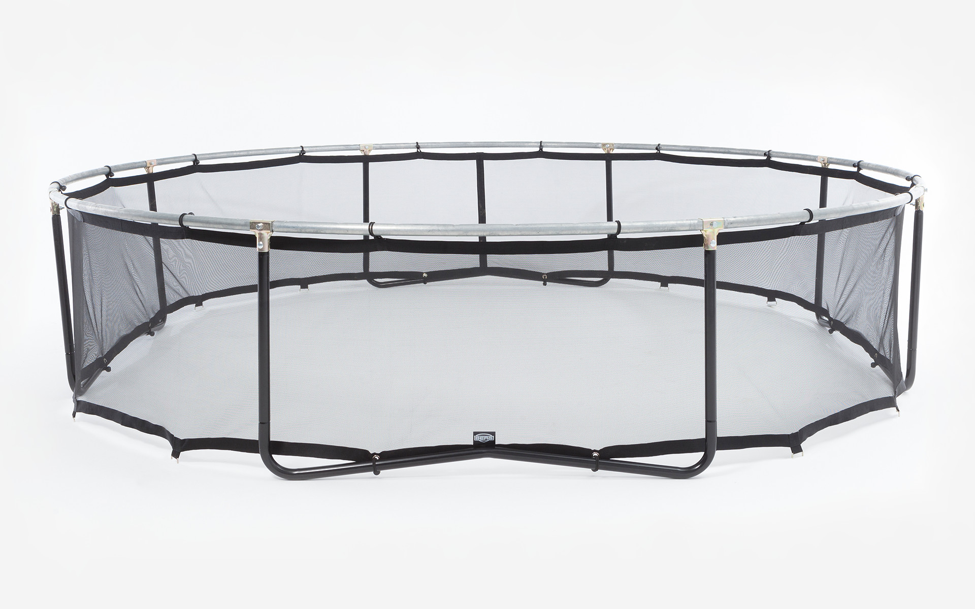 Стильний захисний аксесуар для батута Берг Фрейм Немає Екстра 430, артикул 35.80.14.01 виконаний зі сталі, представлений міцними металевими елементами, вушками, гаками, кільцями, штифтами. Установка займає не більше 20 хвилин, вона доповнить зовнішній вигляд батута, захистить механічну конструкцію від дрібних предметів і піску, поліпшить практичність.