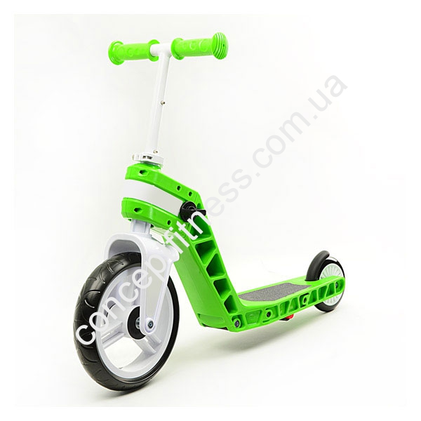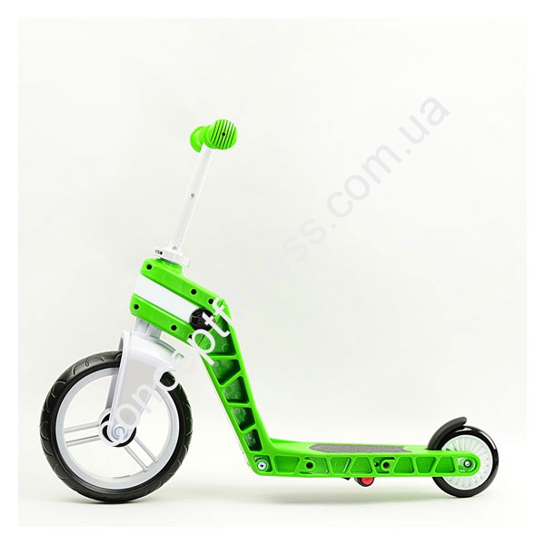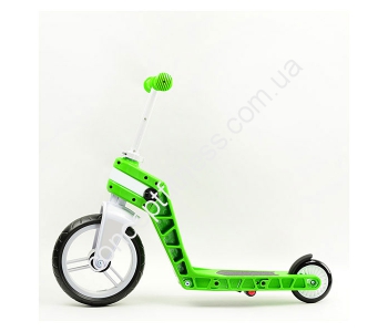 Беговел-самокат Real Baby DSP-05 green - відмінний транспорт для розвитку балансу і координації дитини від 2-х років. Модель 2 в 1, трансформується в самокат. Виготовлений з удароміцного композитного пластика. Діаметр переднього колеса - 24 см, матеріал - EVA. Діаметр заднього колеса - 12 см, матеріал - поліуретан. ПРОМПІДШИПНИК. Кермо регулюються по висоті. Сидіння складне. Нескользящая підніжка самоката.