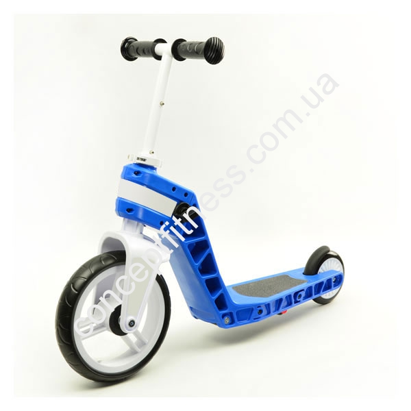 Беговел-самокат Real Baby DSP-05 blue ndash; відмінний транспорт для розвитку балансу і координації дитини від 2-х років. Модель 2 в 1, трансформується в самокат. Виготовлений з удароміцного композитного пластика. Діаметр переднього колеса - 24 см, матеріал - EVA. Діаметр заднього колеса - 12 см, матеріал - поліуретан. ПРОМПІДШИПНИК. Кермо регулюються по висоті. Сидіння складне. Нескользящая підніжка самоката.