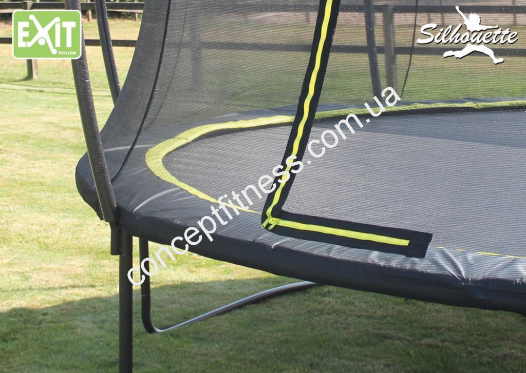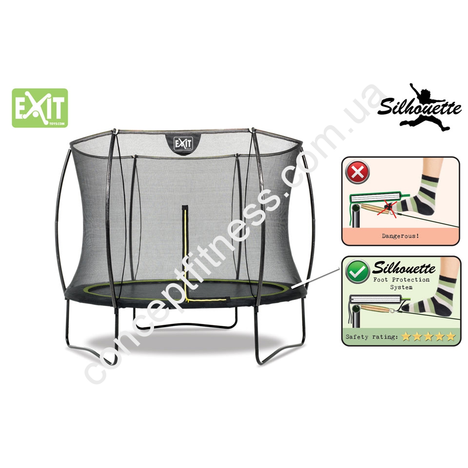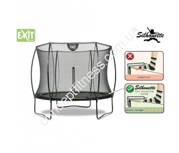 EXIT Silhouette Trampoline 305 (10ft) - це відмінний жорсткий батут, пропонований цінителям гідної якості і чудових показників довговічності за привабливу ціну! Забезпечує високий рівень безпеки за рахунок оснащення конструкції міцної надійною базою у вигляді металевої рами, обладнаної спеціальними пружинними замками для гарантії того, що в процесі стрибків окремі частини рами не розділяться, а також щільною захисною сіткою з входом на блискавці, яка кріпиться до зігнутим стійок, завдяки чому вона міцно прилягає, тому створюється не тільки красивий і елегантний вигляд батута, а й додаткова протекція для дітей. Захисна крайка в даній моделі має товщину 2 см, а її ширина становить 28,5 см, вона ефективно покриває пружини від стрибунів, при цьому відстань від краю батута до пружин також закрито сіткою. Висота даної установки - 256 см. Виріб важить 47,6 кг і в упаковці має розміри 158х44,5х21 см.