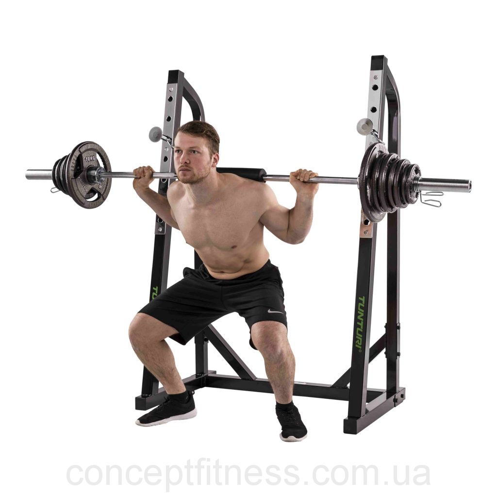 Стійка для присідань Tunturi WT40 Squat Rack 17TSWT4000 допоможе вам проводити професійні тренування силового типу, сприяючи розвитку основних груп м'язів. Така тренувальна стійка оснащена споттер для грифа штанги, які виступають в якості власників. Кілька рівнів висоти власників дозволяють проводити тренування різного рівня складності. Стійка для присідань Тантурі ВТ40 Скват Рок 17ТСВТ4000 дозволить вам виконувати безліч різних вагових вправ, таких як присідання і жим з використанням лави. Коли ви закінчите вправу, то зможете зберігати свою штангу прямо на представленої стійці, поклавши на утримувачі. Тренувальна стійка дозволяє вам тренувати в максимально комфортних і безпечних умовах.