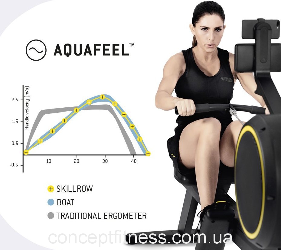 Повітряний опір AQUAFEEL™ максимально точно імітує природну криву ходу весел у воді. AQUAFEEL™ робить навантаження плавним, розподіляє його по всій довжині руху та знімає напругу з нижньої частини спини.