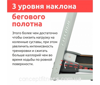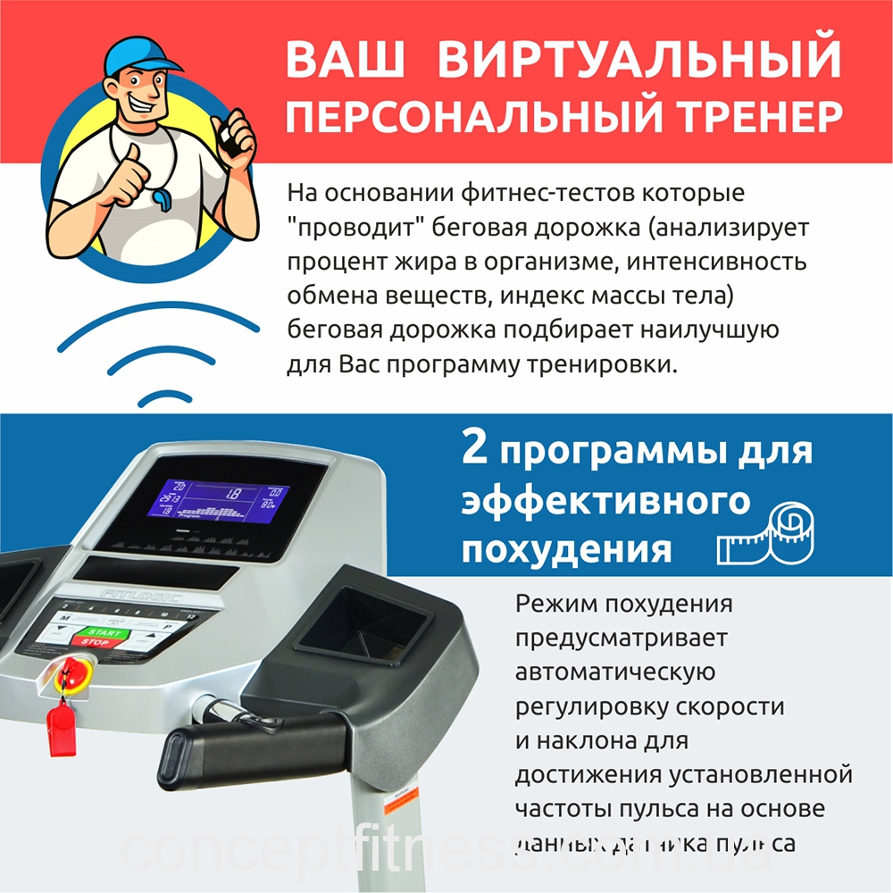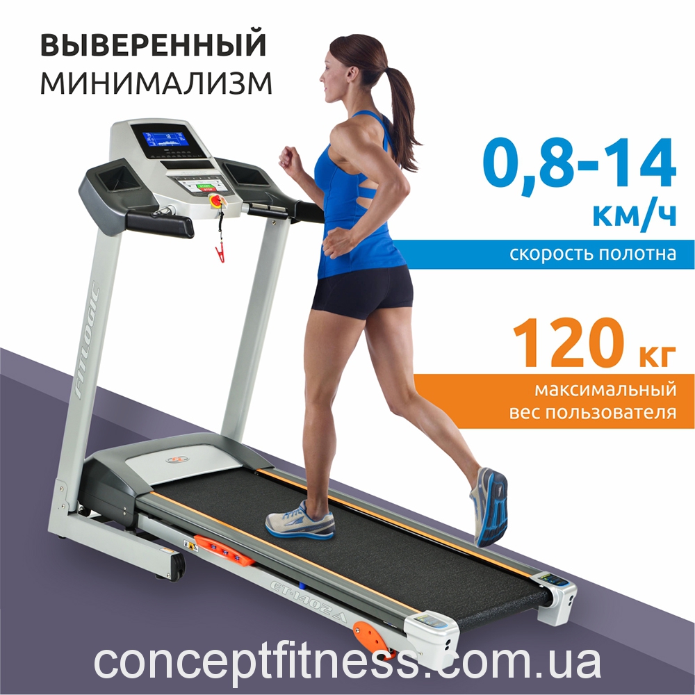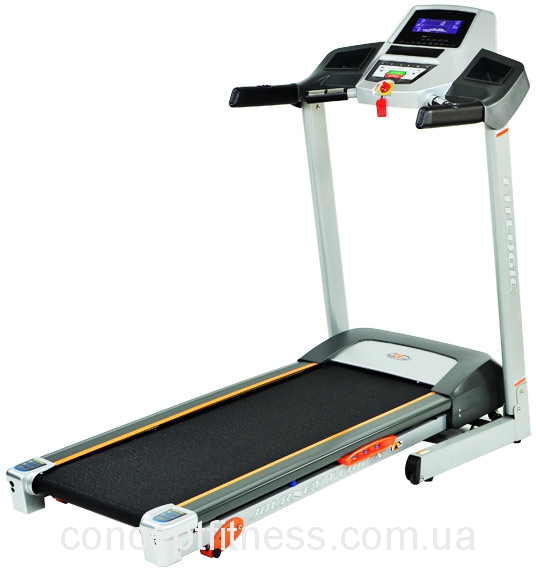 Бігова доріжка FitLogic ET1402A - це унікальний стиль нового дизайну, що передбачає просунуту підтримку мультимедіа. Дана конструкція має двигун штатної потужністю 2,5 к.с., до того ж встановлений на борту інтелектуальний програмний модуль прошитий 15 заводськими преднастройка. У базі пам'яті також знаходиться унікальна програма сканінга, що дозволяє оптимальним способом налаштувати режим роботи тренажера відповідно до аналізу результату тренування. Передові технології амортизаційної системи DualCushion включають наявність подвійного air-подушки, що забезпечує більшу ефективність поглинання вібрацій в процесі тренування. Дана модель сконструйована з розрахунком на роботу з вагою користувача в межах 120 кг і важить 62 кг. Заявлені габаритні показники бігового полотна - 130х43 см. Бігова доріжка FitLogic YK-ET1402А mdash; нові стильні доріжка підвищеної комфортності від FitLogic для активного бігу в домашніх умовах, одна з кращих на ринку доріжок у своєму класі і даному ціновому сегменті.