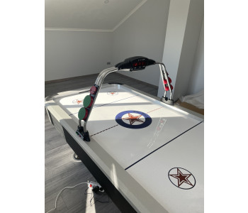 Аерохокей Garlando Stratos (STRATOS) – це преміальна модель повнорозмірного формату, створена для інтенсивного користування у домашніх умовах, офісах, готелях або ігрових зонах. Цей стіл ідеально підходить для дітей від 10 років і дорослих, забезпечуючи захоплюючі командні або парні змагання на найвищому рівні. Італійський бренд Garlando, відомий своєю якістю і довговічністю, пропонує виняткову комбінацію стилю, функціональності й безпеки.