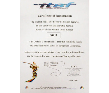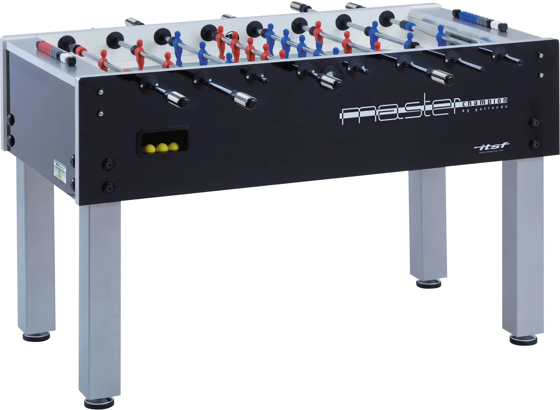 Настільний футбол Garlando Master Champion ITSF (MASTER) - офіційний стіл Міжнародної федерації настільного футболу ITSF, призначений для тренувань професійних гравців і міжнародних змагань категорій International, Master Series і Pro Tour. Міцна конструкція стола має елегантне поєднання чорного та сріблястого кольорів, натхненного стилем хай-тек. Модель виготовлена безпосередньо в Італії з високоякісних матеріалів, що забезпечують довговічність і задоволення від гри, з урахуванням конкретних вимог, яким повинен відповідати футбольний стіл. Настільний футбол Garlando Master Champion ITSF (MASTER) є глибоко інноваційним продуктом у порівнянні з традиційним домашнім столом і ідеальним інструментом для тренувань перед міжнародними турнірами.