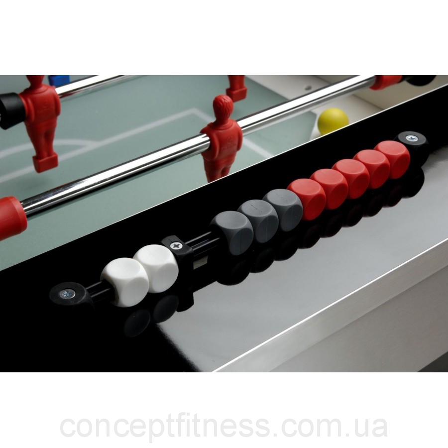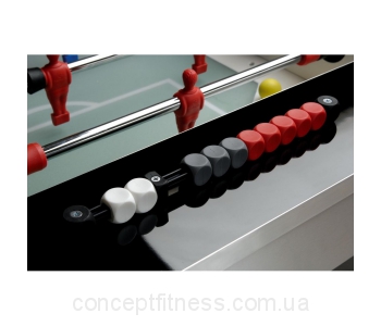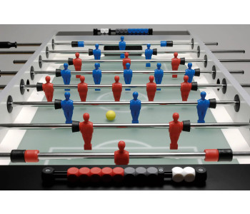 - - Ігрове поле із загартованого антиблікового шліфованого скла з наклоном по периметру для запобігання виникненню "мертвих зон". Білі лінії на зеленому тлі нанесені методом шовкографії, відтворюючи футбольне поле.