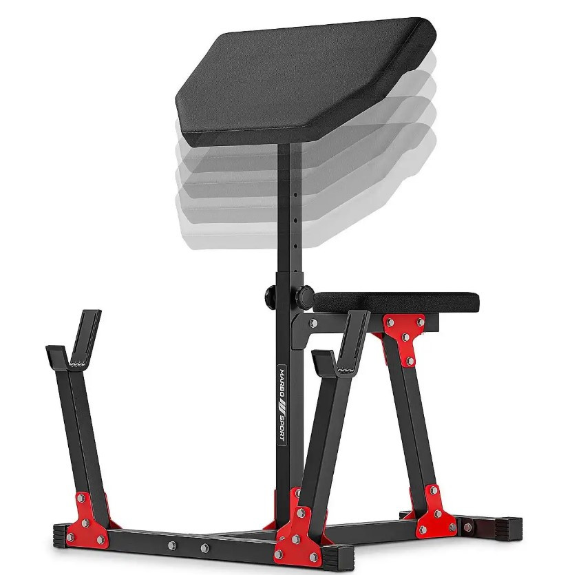 Marbo Sport MH-L105 — це зручна і функціональна лава Скотта, яка ідеально підходить для тренувань у домашніх умовах. Завдяки надійній конструкції, продуманій ергономіці та регулюванню спинки в 5 положеннях, ця модель дозволяє ефективно опрацьовувати біцепси та плечі.