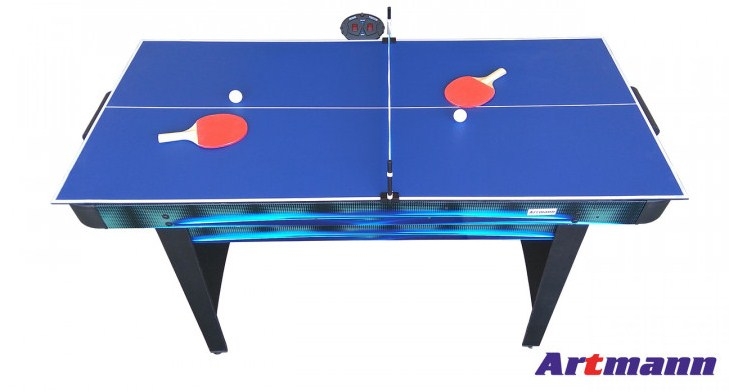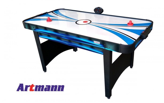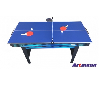 Аерохоккейний стіл FLIP з тенісної кришкою, виробником якого є німецька компанія ARTMANN, вельми компактний і його розміри складають 168 х 81 х 81 см. Вага аерохоккейного столу ndash; 32,5 кг. Корпус виготовлений з надійного МДФ, зовнішня поверхня ndash; ПВХ-плівка. Тенісна кришка ndash; ламінований ударостійкий ДСП, який стійкий до різних механічних пошкоджень і подряпин. Також, варто відзначити наявність електронного лічильника голів і компресора, завдяки якому збільшується швидкість польоту шайби. У комплект даного аерохоккейного столу з тенісної кришкою входить: 2 біти, 2 шайби, сітка для настільного тенісу, 2 ракетки, 2 м'ячики.