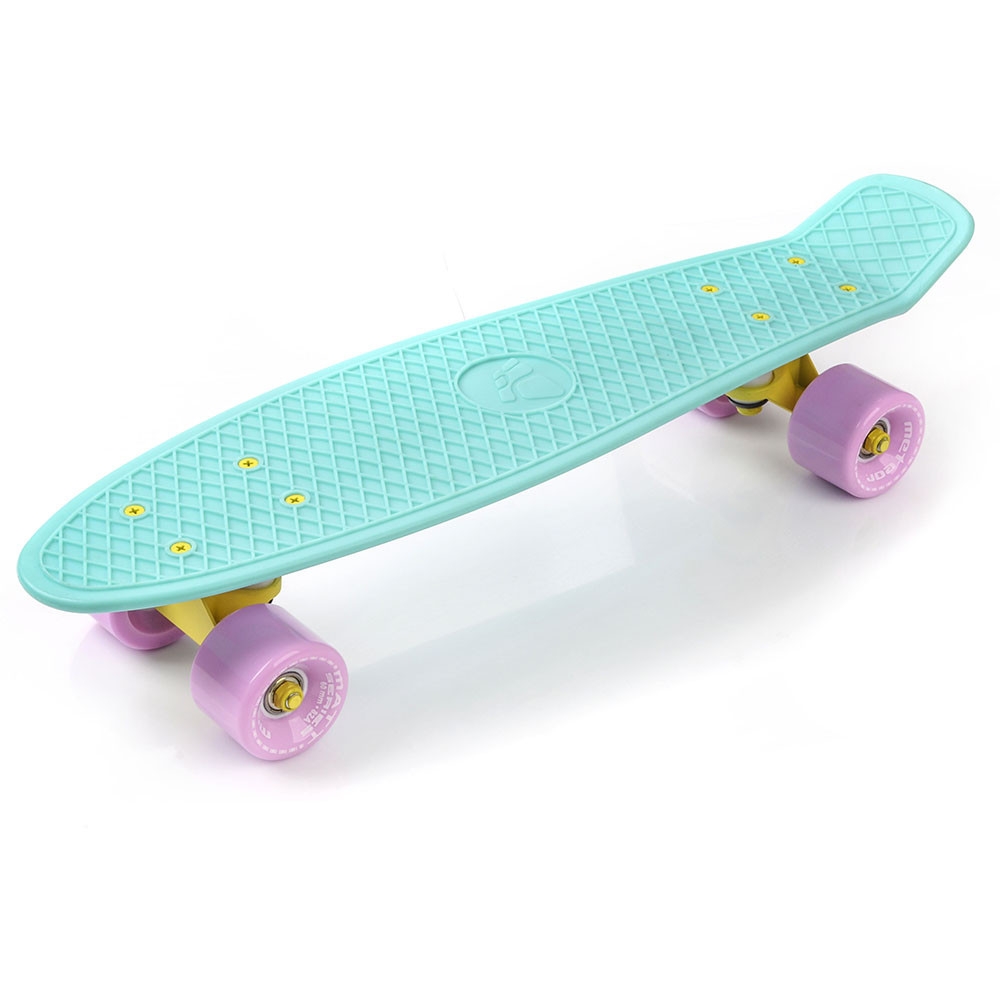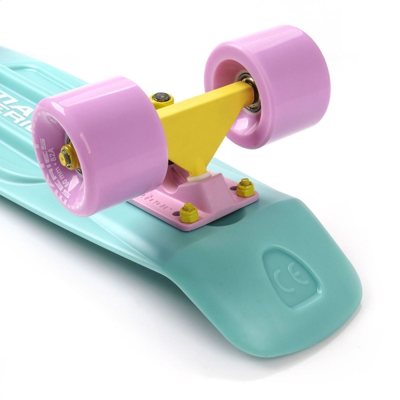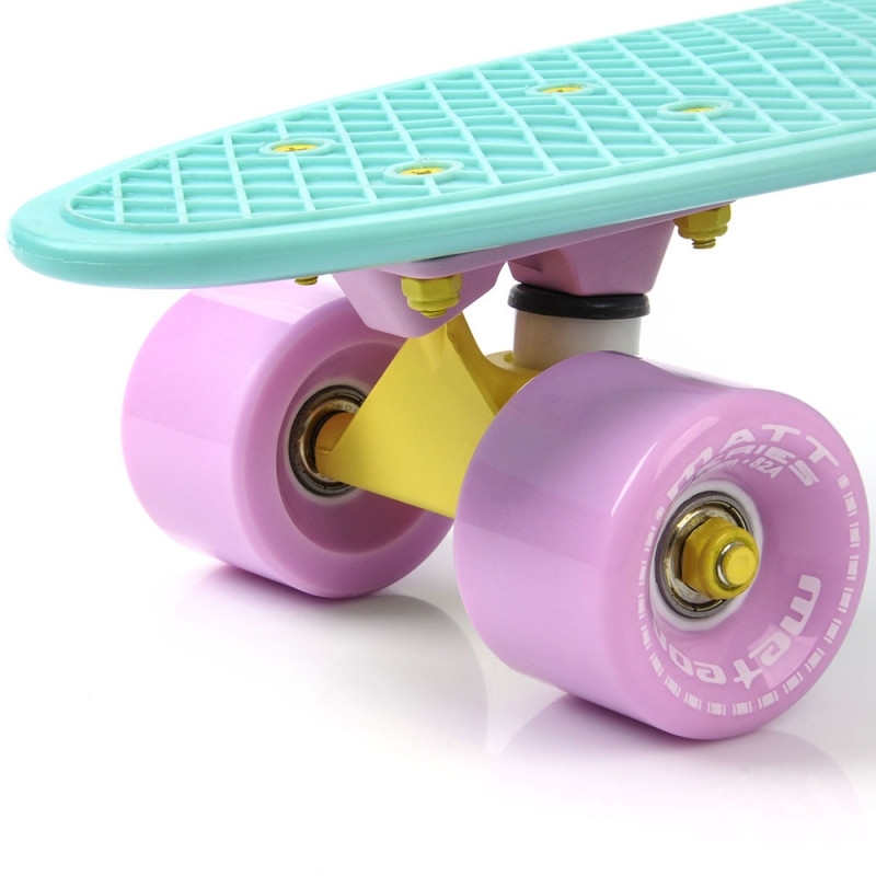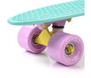Скейтборд Meteor Matt 23718 /minth /pink /yellow можна назвати незвичайною моделлю скейтборду, яка стане ідеальним подарунком не тільки для дітей, але і підлітків, і яку зможуть по достоїнству оцінити маленькі користувачі. Представлене обладнання можна назвати також і ідеальним способом пересування по місту, оскільки широкі в діаметрі коліщатка такої моделі скейта здатні подолати практично будь-яку перешкоду. А завдяки матеріалу, з якого вони створені, колеса не будуть занадто швидко стиратися, не вимагаючи частої заміни даного елемента. Скейтборд Метеор Метт 23718 /минт /пинк /еллов є володарем зносостійкого деки з посиленого пластику, що дозволяє скейтборду витримувати падіння, стрибки і більшість інших механічних навантажень. Вигнута задня частина і сама форма деки робить представлене обладнання більш маневреним і дозволяє маленькому райдеру практикувати різноманітні трюки.