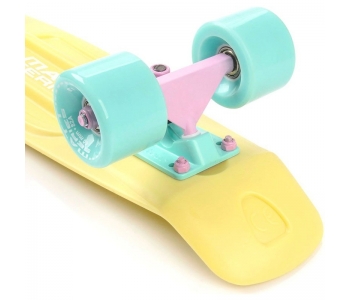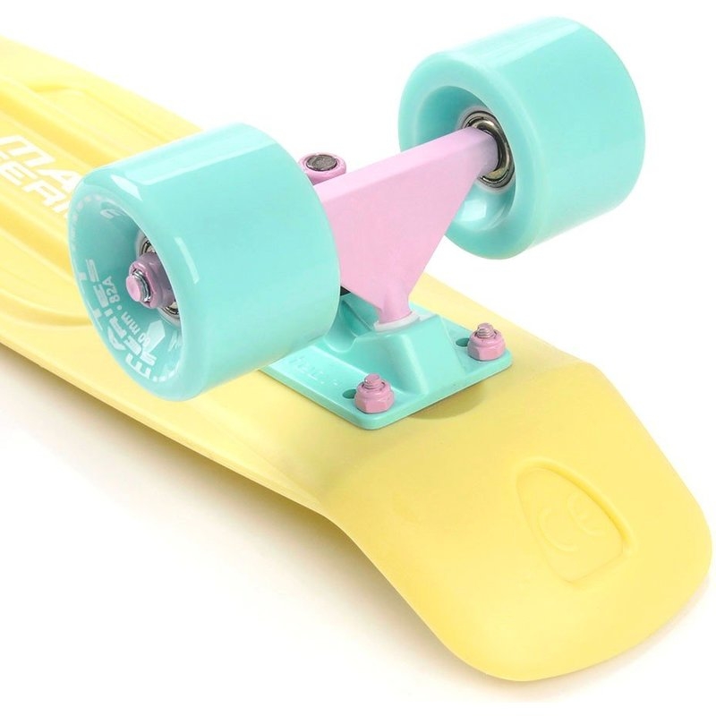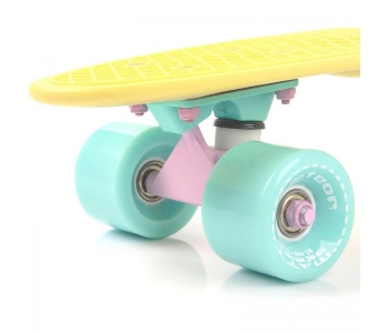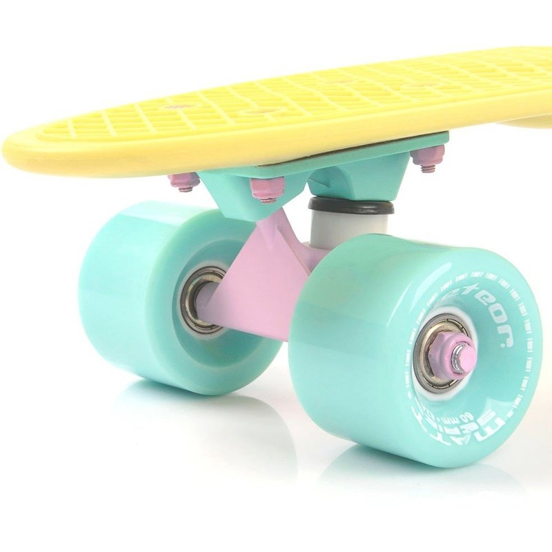 Скейтборд Meteor Matt 23769 /yellow /minth /minth високоякісне обладнання, яке здатне служити досить довгий час завдяки зносостійким компонентам. Зручність виконання трюків забезпечує форма деки і її вигнута задня частина, що також робить скейтборд кращою моделлю для початківців. Простота конструкції і маневреність дозволили пенні борду завоювати популярність серед дітей і підлітків. Оскільки поверхню деки має рифлений візерунок, маленький користувач завжди буде залишатися в найбільш стійке положення. Скейтборд Метеор Метт 23769 /еллов /минт /минт це не тільки сучасний дизайн, а й яскраве поєднання кольорів, що робить представлену модель вельми стильною. Для того, щоб маленький райдер міг з легкістю долати вуличні перешкоди у вигляді купин і вибоїн, борд був обладнаний надійними коліщатками.