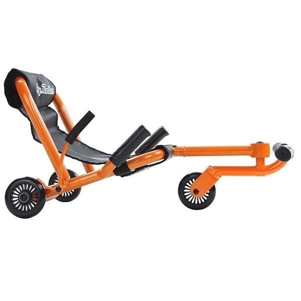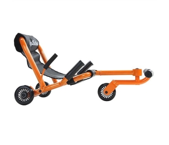 Езі ролер EZR Classik orange EZR1O має досить комфортною конструкцією, яка, на відміну від більшості веломашин, дозволяє райдеру перебувати в положенні підлозі лежачи, щоб не втомлюватися. Зручне сидіння зі спинкою забезпечує надійну підтримку спини дитини для анатомічно правильного положення. Для того, щоб представлена модель веломобіля довгий час залишалася в придатному стані, її рама була покрита захисною водонепроникною фарбою. Езі ролер ЕЗР Класик орандж ЕЗР1O замість педалей оснащується рухомий віссю і поперечиною для ніг райдера зі спеціальними накладками. Надійні колеса забезпечують даному ролер можливість рухатися не тільки на твердих поверхнях, але також і на траві, або ж на килимі. Для своєчасної зупинки при сильному розгоні ролер обладнаний гальмом, що знаходиться біля заднього колеса поруч з ручками.