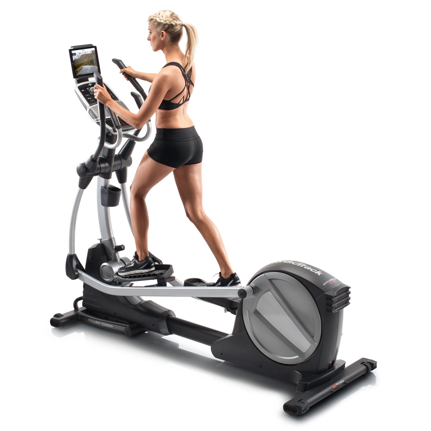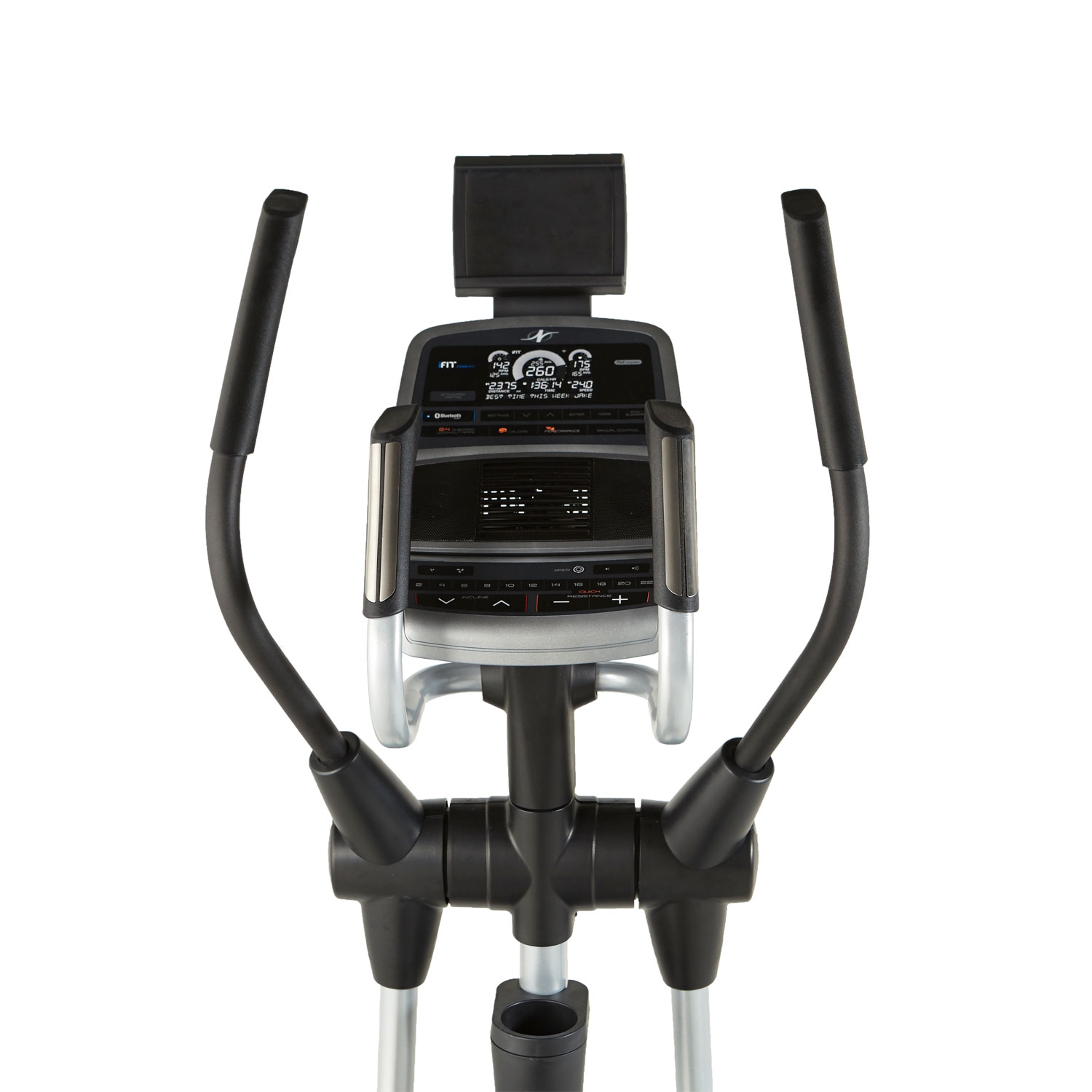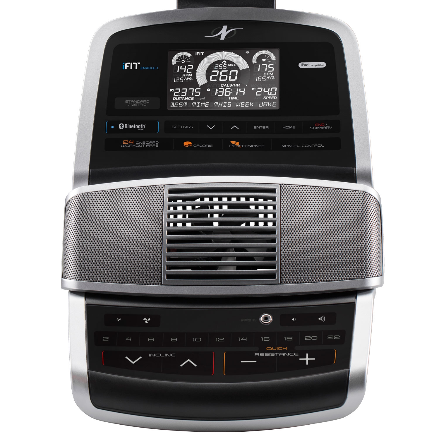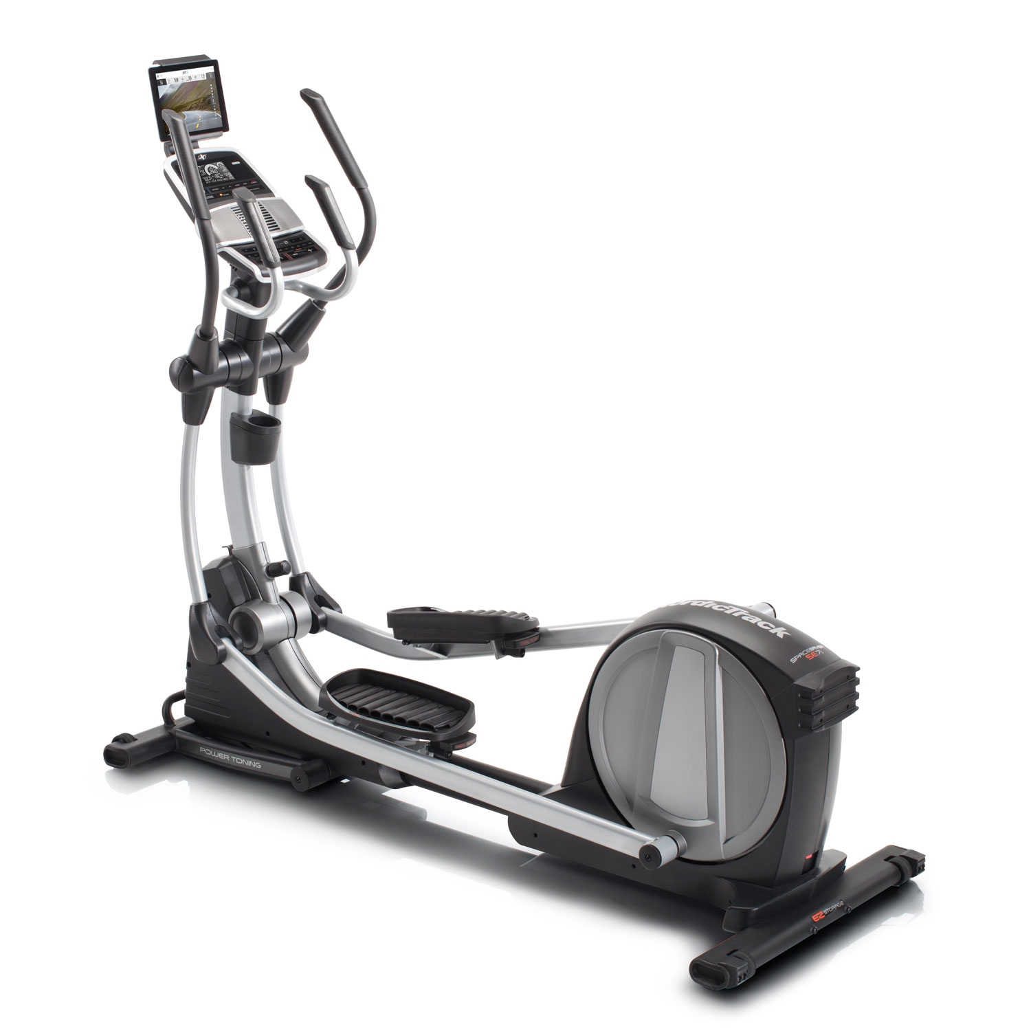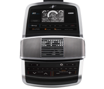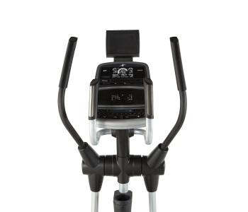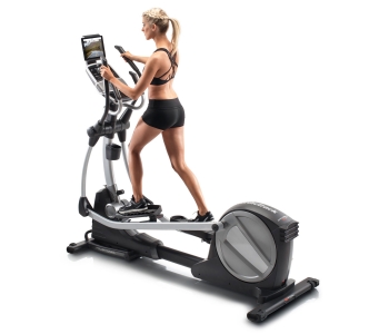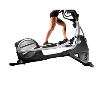 Домашній еліптичний тренажер з класичним задньопривідним розташуванням маховика вагою 8 кг і довжиною кроку 46 см. 22 рівня безшумного магнітного опору з електронним регулюванням, 24 вбудовані програми. Вбудований вентилятор AutoBreezetrade; з ручною і автоматичним регулюванням, щоб провести тренування в комфортних умовах. Зміна кута нахилу до 10 градусів за допомогою кнопки на консолі тренажера дозволить краще прокачати ваші квадріцепси, ігри і сідниці.