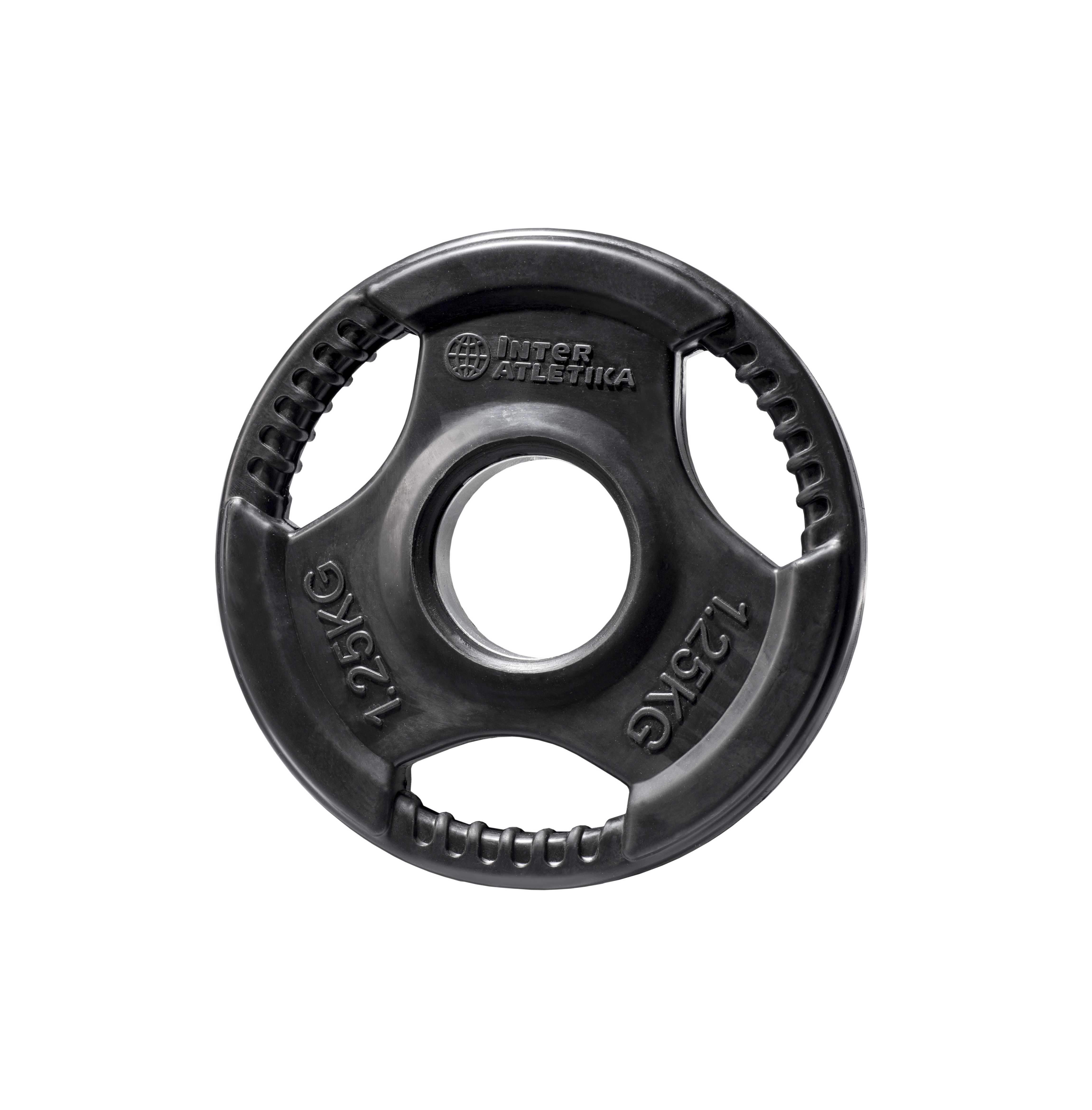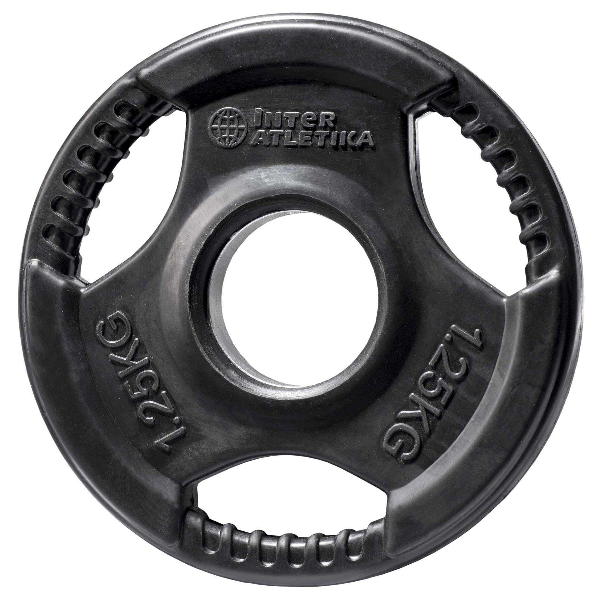 Диск InterAtletika LCAH-M гумовий з ручками призначений для зміни ваги штанги або гантелі. Використовується в поєднанні з цими снарядами, також можна застосовувати як обтяжувач замість гантелі. Щоб диск не сковзнув грифа під час тренування, рекомендується надійно його фіксувати. Диск має ручки для зручнішого перенесення та одягання їх на штангу або гантель. Завдяки обрізаному верхньому шару, диск не зіпсує покриття для підлоги, тренажери або стіну при падінні. Диск InterAtletika LCAH-M – незамінний спортивний інвентар для роботи з вільними вагами. Так, спортсмен має можливість вибрати необхідний рівень навантаження для ефективного опрацювання м'язів плечового пояса, біцепса, трицепса, грудних груп м'язів.