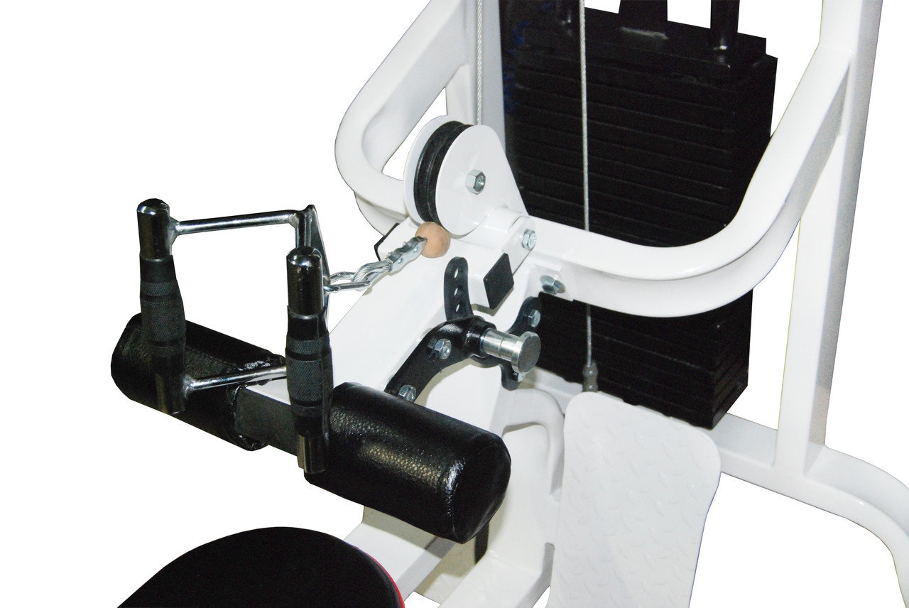 Обидві тяги задіяні одночасно і не вимагають перестановок .. У вузлах тренажера встановлені підшипники, завдяки яким значно збільшується ресурс роботи, поліпшується плавність і легкість ходу. В конструкції використана технологія TRIPLE FULCRUM, завдяки якій тренажер завжди має відмінну стійкість, навіть на нерівній підлозі. Напівавтоматичний фіксатор дозволить миттєво налаштувати упори для ніг під себе. У плитках стека встановлені пластикові ущільнення для поліпшення ковзання по нержавіючим напрямних.