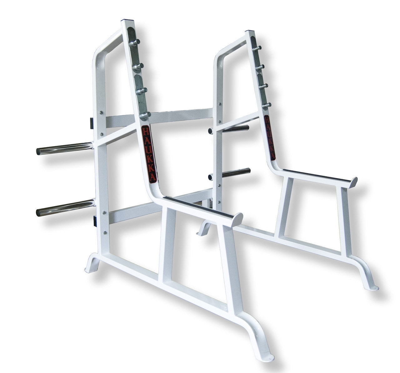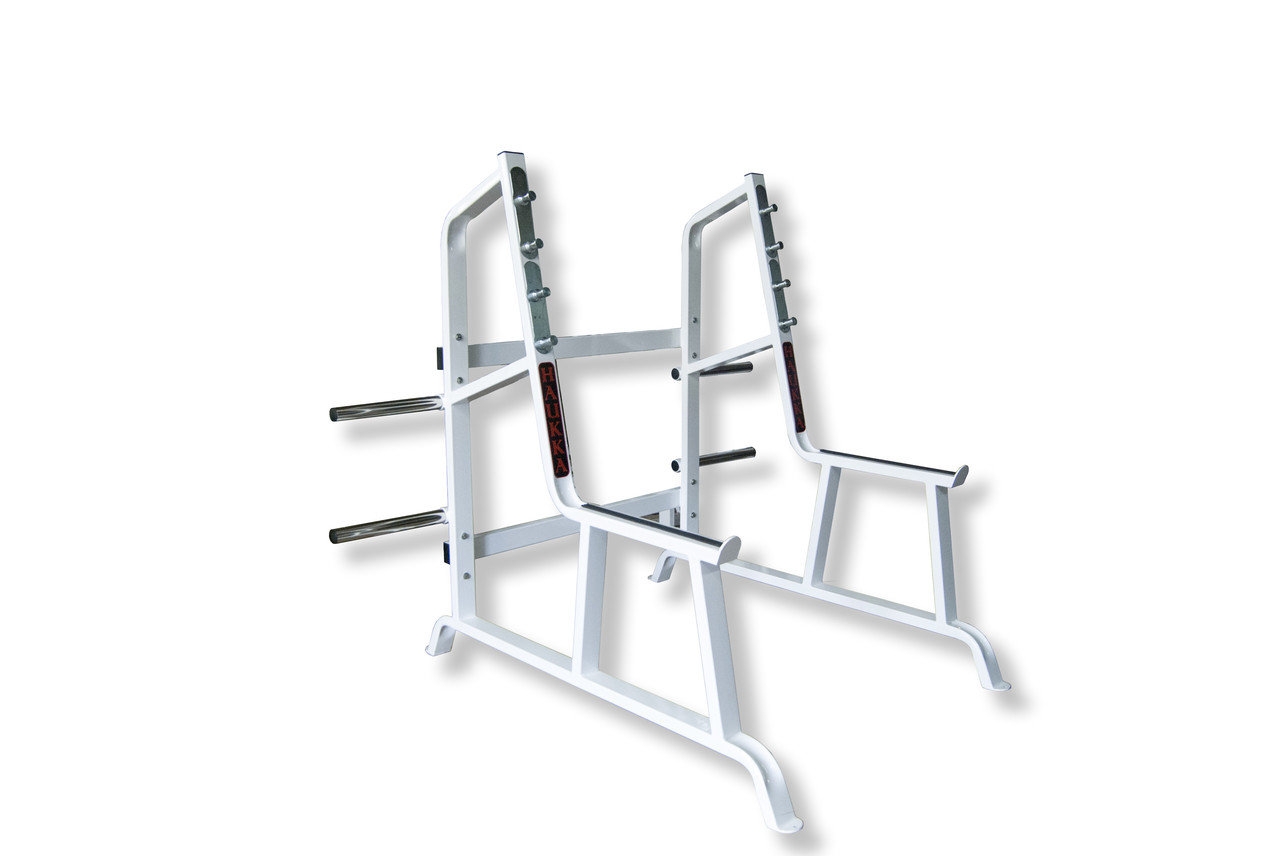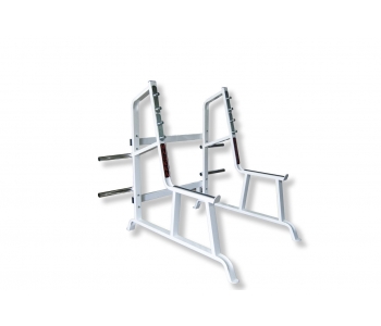 Тренажер має жорстку потужну конструкцію, необхідну для присідання з будь-якими вагами. Гаки, які утримують гриф, виточені з цільного металу і оцинковані для зносостійкості. Страховки виконані нерегульованої частиною конструкції, для гарантії безпеки і мають гумову амортизирующую накладку, для збереження зовнішнього вигляду.