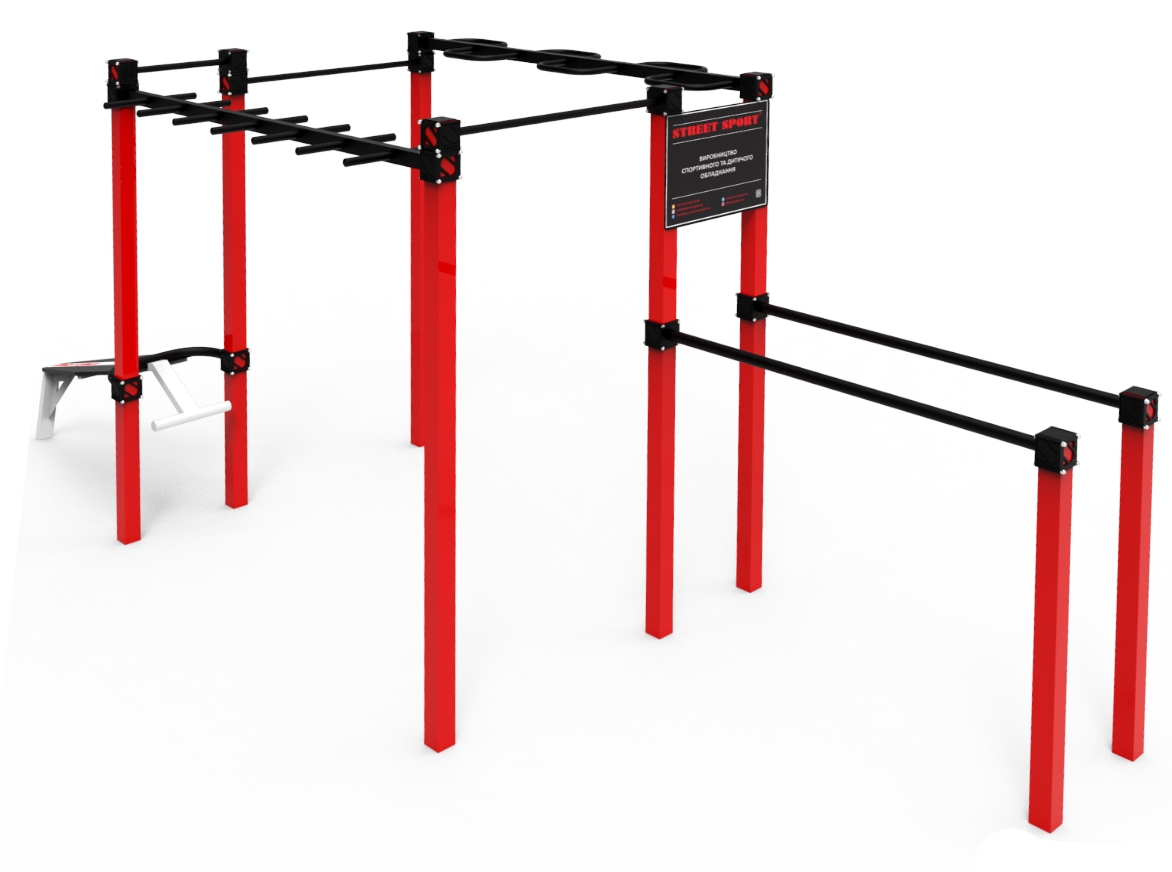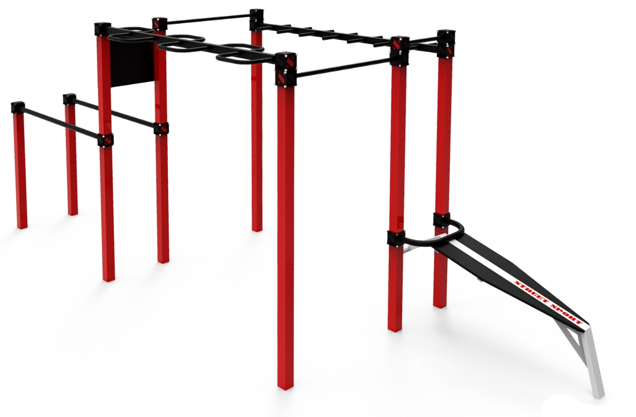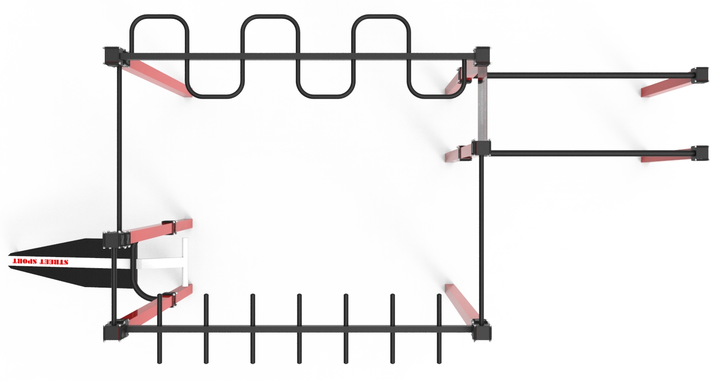 Спортивний комплекс StreetSport S-10.1 призначений для установки на вулиці, під відкритим небом, тим більше що покриття всіх металевих частин забезпечує надійний захист. Високоміцні компоненти забезпечують довговічність комплексу і можливість витримувати підвищені навантаження. Розширений функціонал даного комплексу дозволить займатися одночасно кількома спортсменам. Одна з основних особливостей такого комплексу так само полягає в тому, що, при бажанні, його можна доповнити й іншими елементами. Спортивний комплекс СтрітСпорт С-10.1 призначений для можливості виконувати цілий комплекс різноманітних вправ по воркауту. Подібний тип обладнання можна використовувати і для самостійних тренувань, і для занять з використанням спортивного інвентарю.