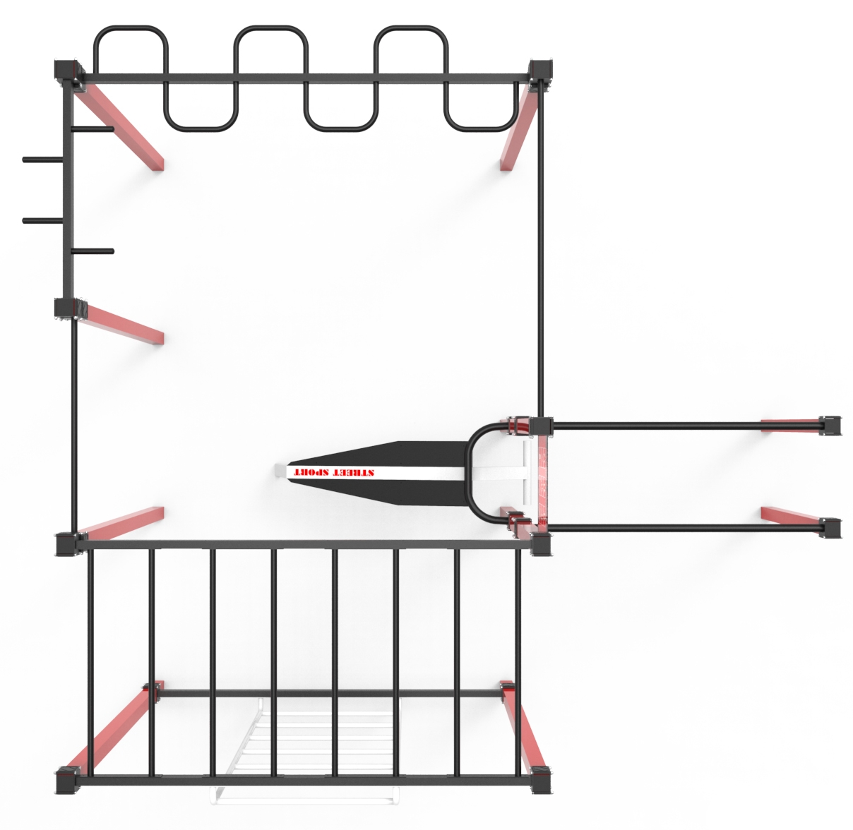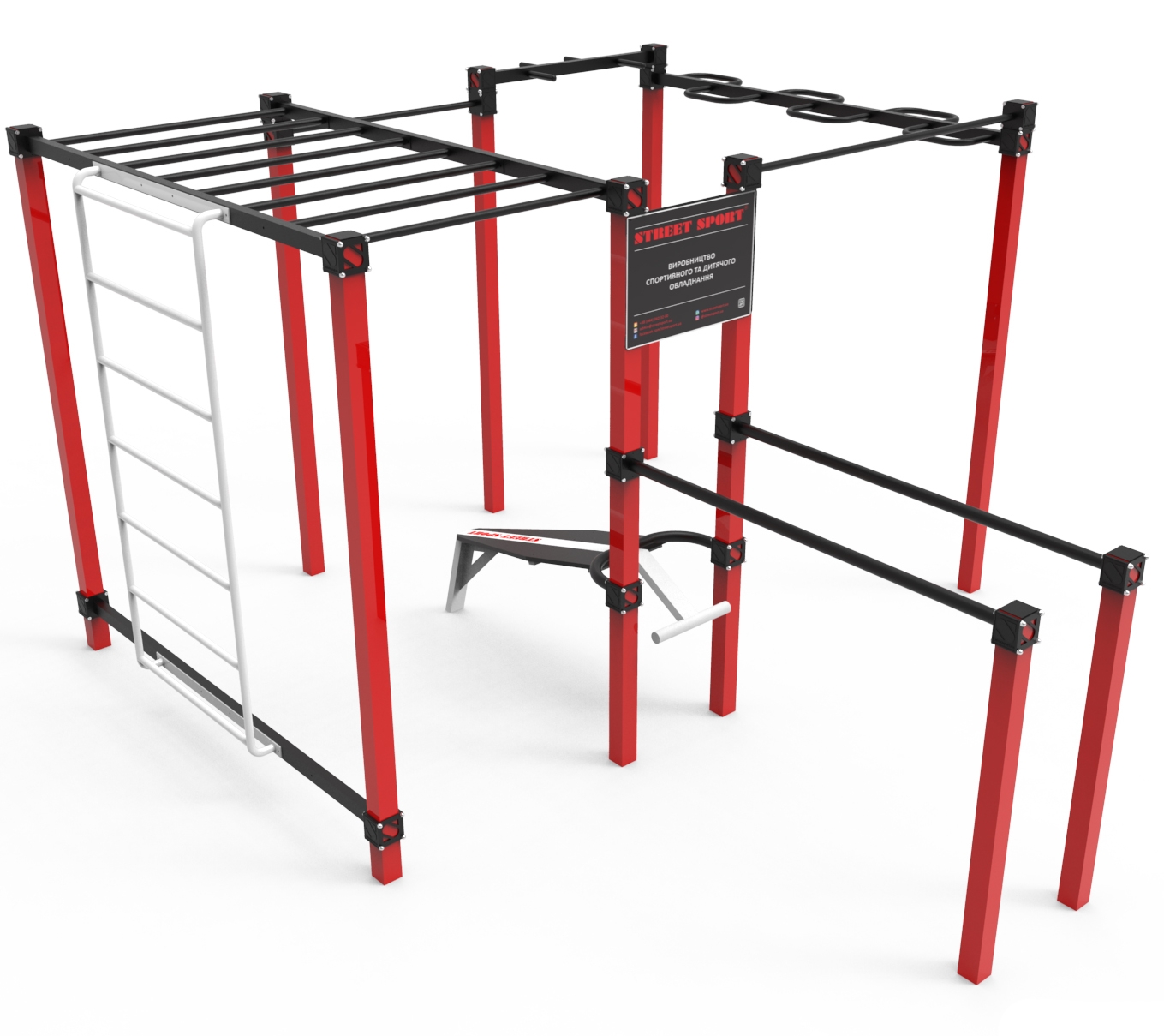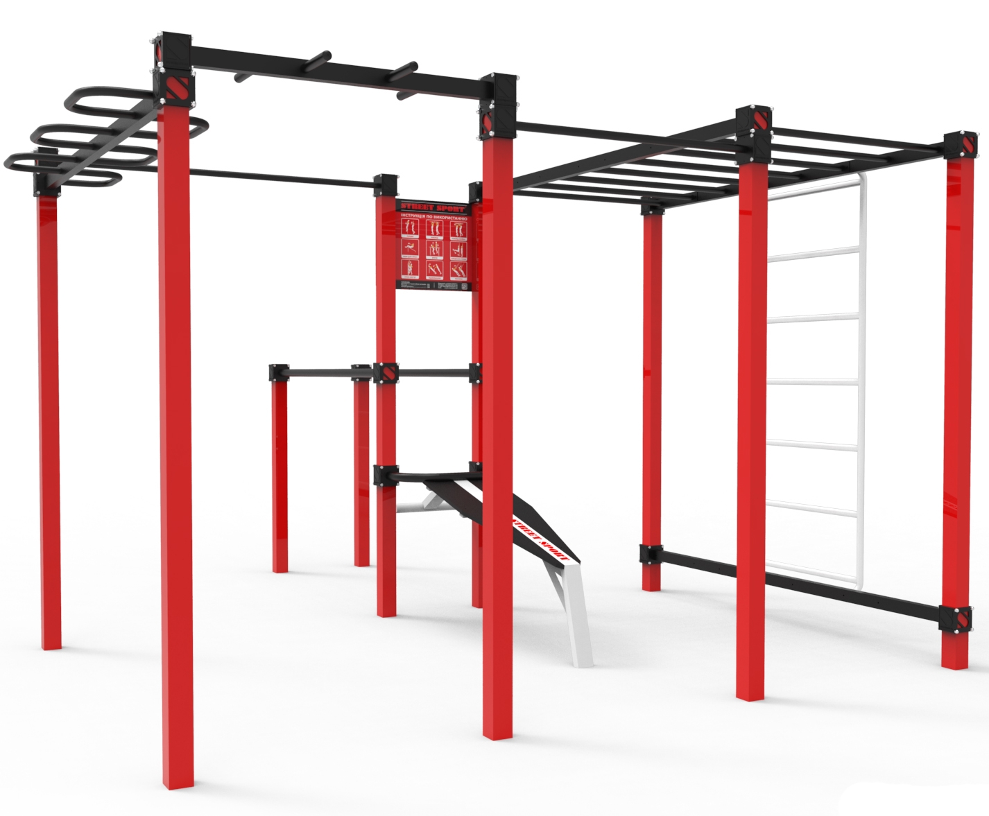 Спортивний комплекс StreetSport S-20.1 довгий час зберігає свою функціональність і не ламається за рахунок того, що створений на основі металевого каркаса. Довговічність даного комплексу обумовлена використанням якісних і міцних компонентів. Габарити і структура комплексу забезпечує можливість одночасної тренування кількох людей, що виключать необхідність чекати своєї черги, щоб потренуватися. Всі частини комплексу, які створені для хвата, виключають небезпеку ковзання рук спортсмена, щоб ви не травмувалися. Спортивний комплекс СтрітСпорт С-20.1 стане прекрасним варіантом спортивного обладнання для установки у дворі будинку, або на будь-який спортивному майданчику. Подібні види спортивного обладнання вельми популярні серед молодих спортсменів, оскільки є безкоштовними і загальнодоступними.