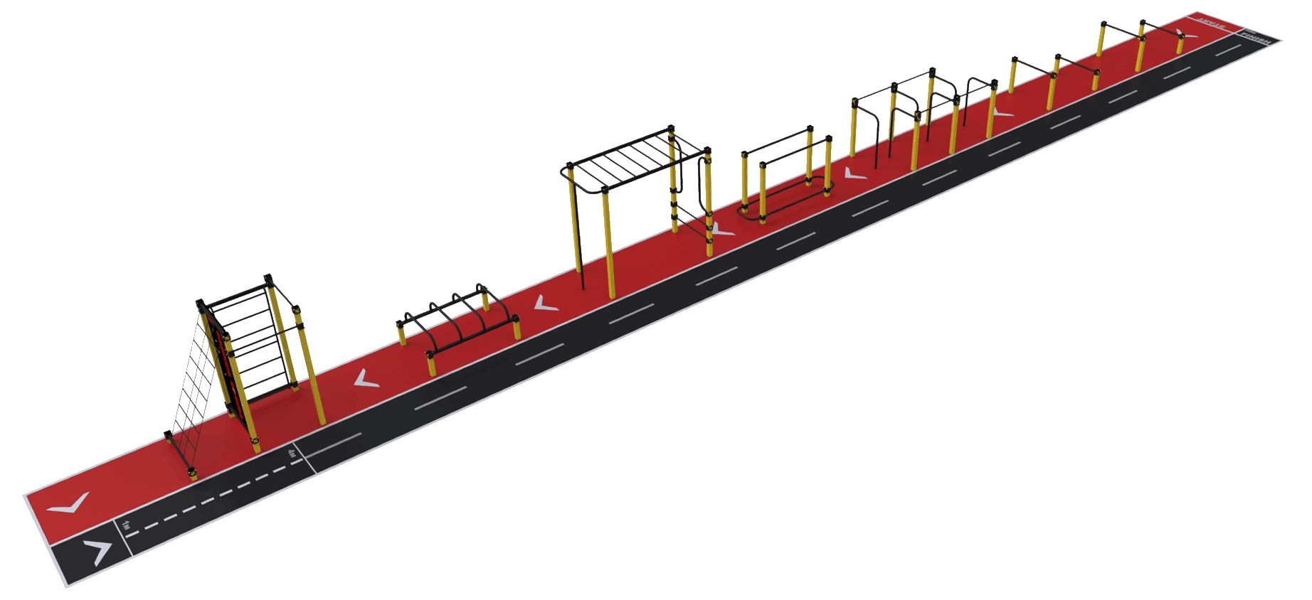 Шкільний спортивний комплекс StreetSport SCS 30.1 складається з декількох спортивних елементів різного типу, кожен з яких забезпечує тренування м'язів і розвиток швидкості. Оскільки представлене обладнання повинно залишатися стійким перед впливом погодних чинників, воно було покрите захисною фарбою. Представлений комплекс можна, фактично, назвати смугою перешкод, що допоможе при розвитку всіх груп м'язів. Металевий каркас кожного елемента представленого комплексу забезпечує їх надійність і довговічність використання. Шкільний спортивний комплекс СтрітСпорт ССС 30.1 чудовий комплекс для занять спортом на професійному рівні, який покликаний готувати спортсменів до змагань. Представлена модель комплексу ідеально підійде і для шкільних спортивних майданчиків, і для установки на вуличних майданчиках.