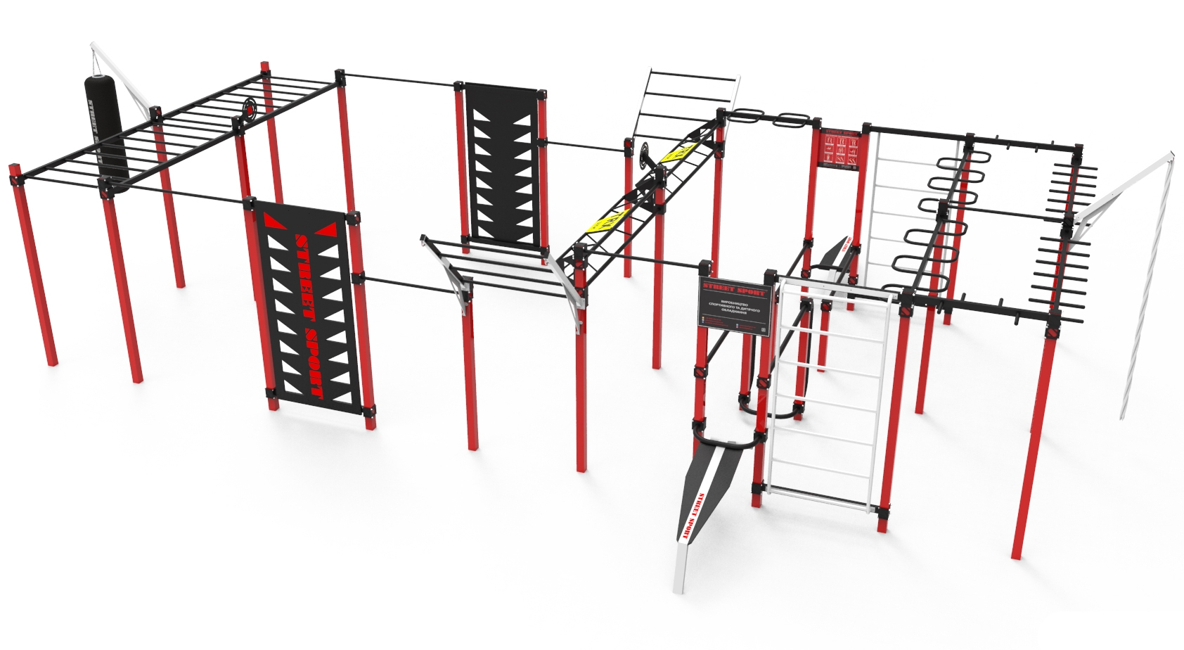 Спортивний комплекс StreetSport S-60 це високоякісна конструкція, що дозволяє отримувати задоволення і результат від тренувань. Вуличний комплекс ідеально підходить для регулярних силових тренувань, а також для щоденного використання при простий розминці. Основні елементи комплексу дають можливість качати практично всі групи м'язів і тримати їх в тонусі. Спортивний комплекс СтрітСпорт С-60 це саме те, що допоможе поліпшити силові здібності і прийти в ідеальну форму. Для того, щоб представлене обладнання могло зберігати свою міцність, воно було сконструйовано з металевого профілю. Довговічність спортивного комплексу стала можливою завдяки покриттю за допомогою захисної фарби.