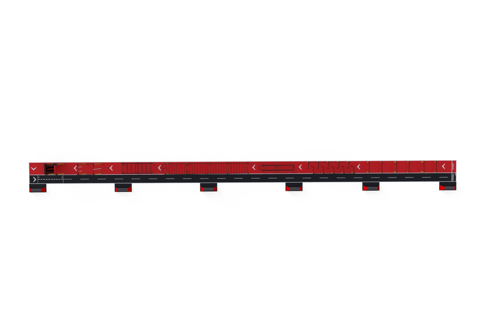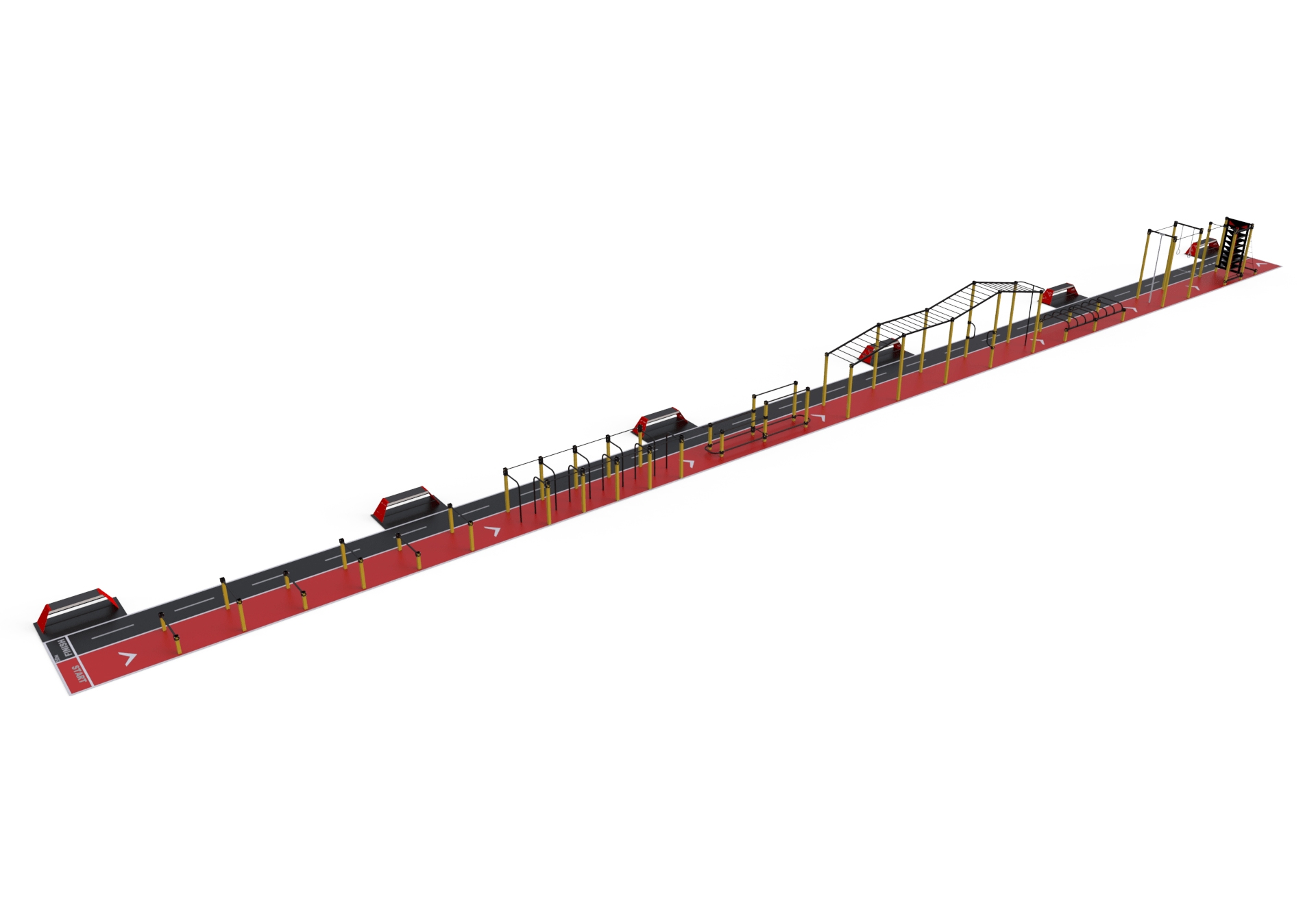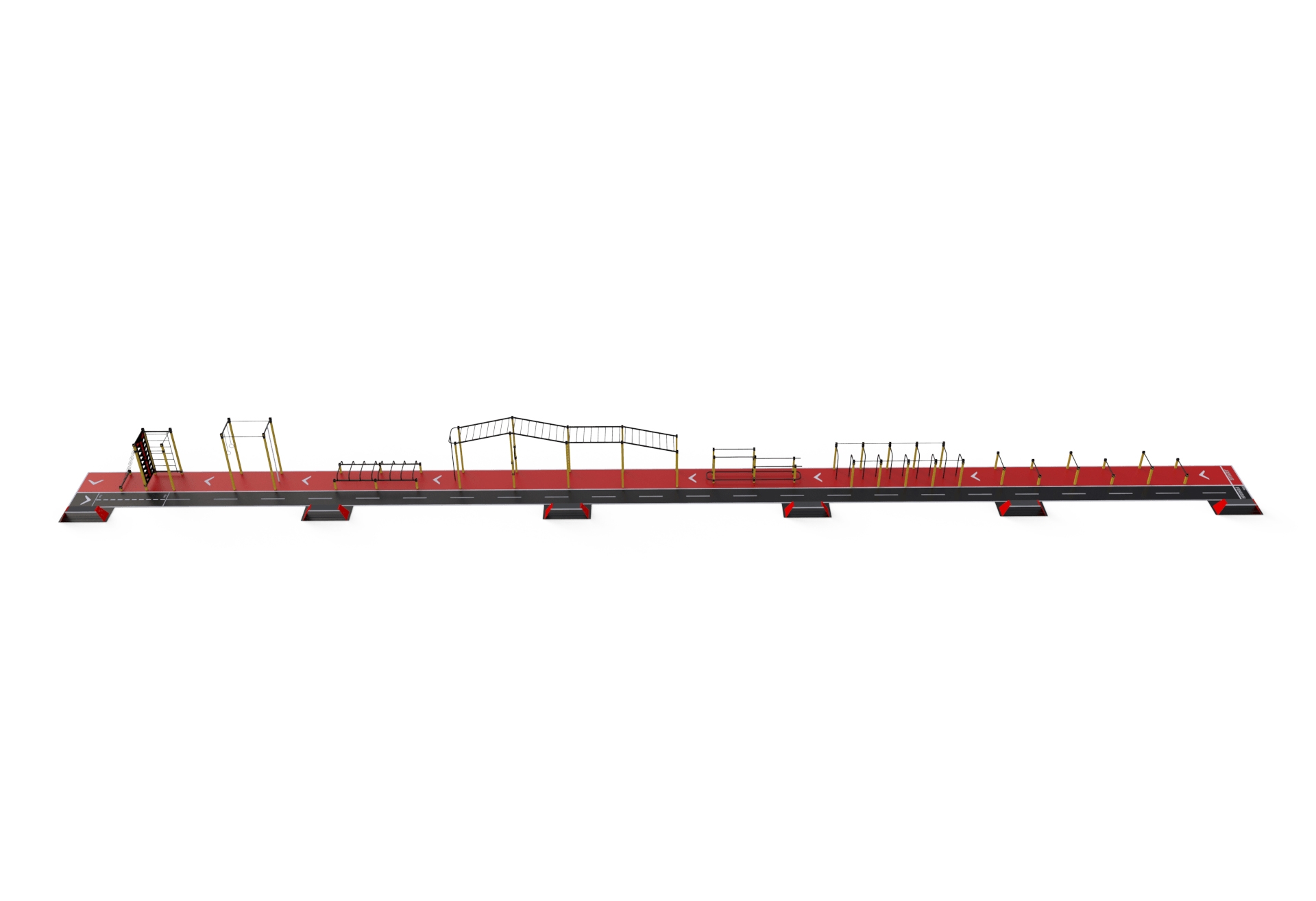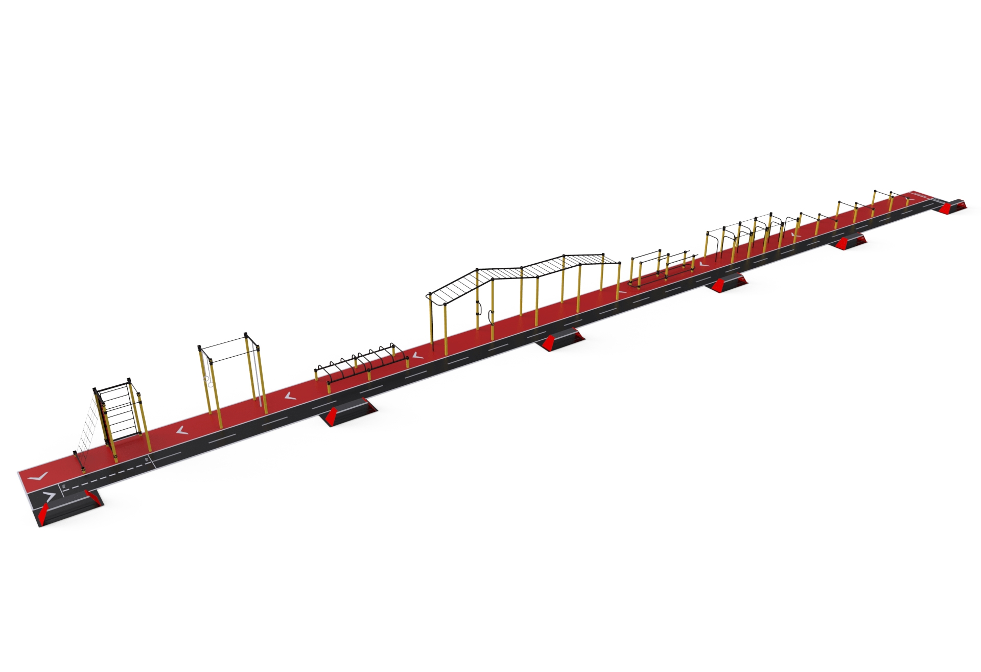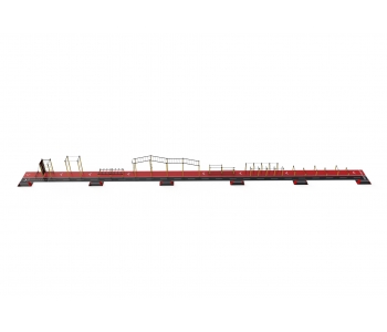 Шкільний спортивний комплекс StreetSport SCS 50.1 чудовий комплекс для занять спортом на професійному рівні, який покликаний готувати спортсменів до змагань. Представлений комплекс можна, фактично, назвати смугою перешкод, що допоможе при розвитку всіх груп м'язів. Представлена модель комплексу ідеально підійде і для шкільних спортивних майданчиків, і для установки на вуличних майданчиках. Шкільний спортивний комплекс СтрітСпорт ССС 50.1 складається з декількох спортивних елементів різного типу, кожен з яких забезпечує тренування м'язів і розвиток швидкості. Металевий каркас кожного елемента представленого комплексу забезпечує їх надійність і довговічність використання. Оскільки представлене обладнання повинно залишатися стійким перед впливом погодних чинників, воно було покрите захисною фарбою.