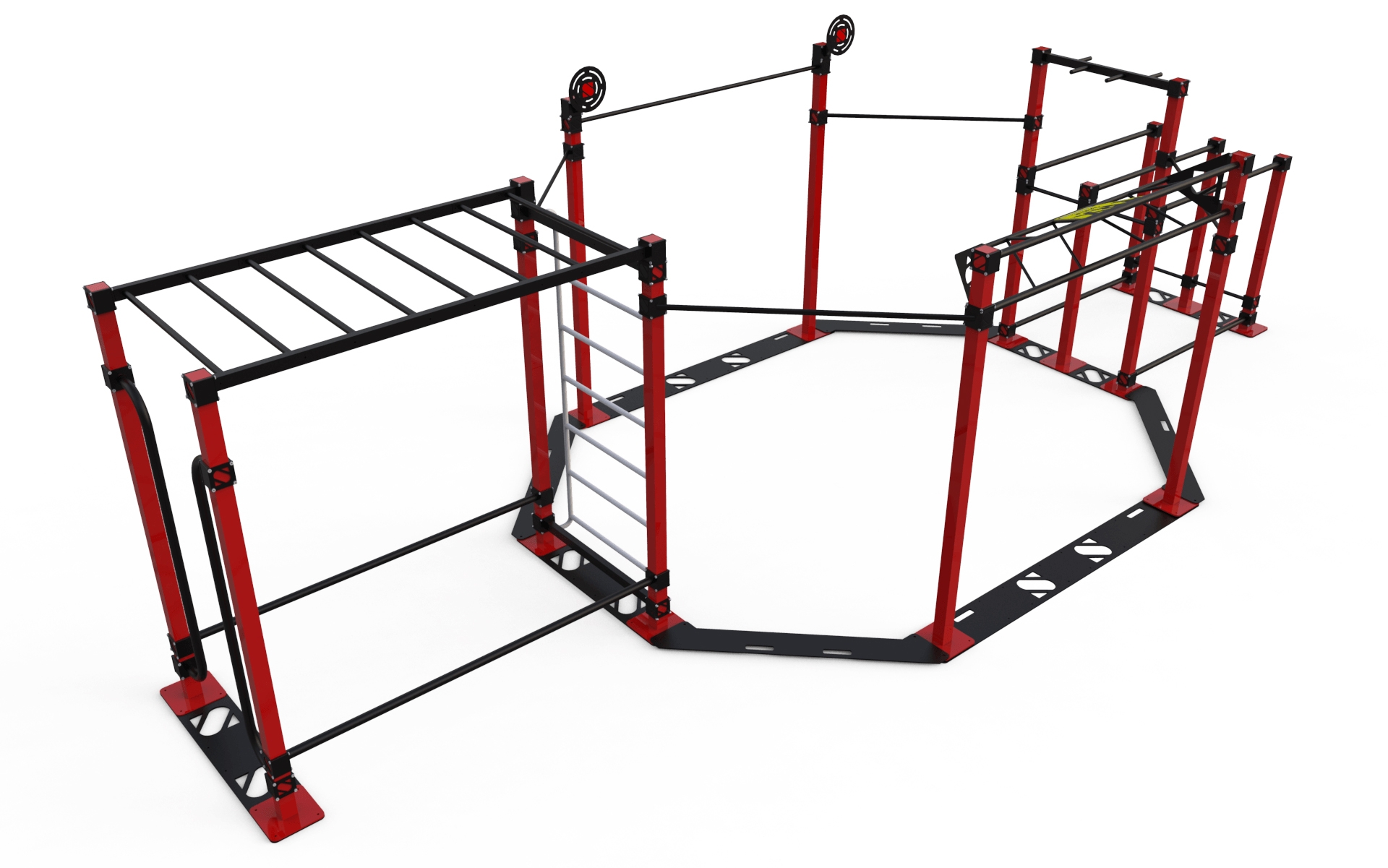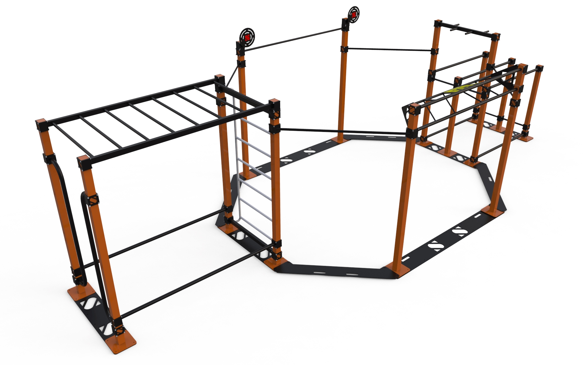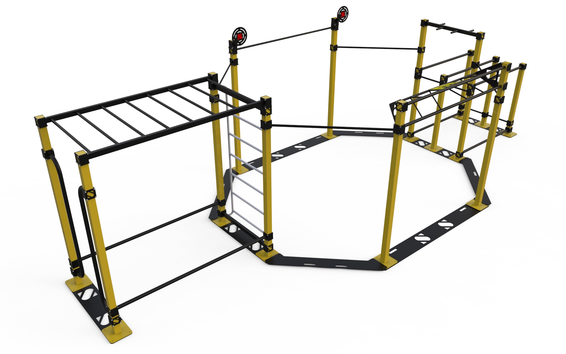Спортивний комплекс StreetSport SS-3 стане просто незамінним елементом будь-якого спортивного куточка, який забезпечить необхідний комплекс загальнофізичної навантажень не тільки юним спортсменам, а й більш літнім користувачам. Щоденні тренування на даній комплексі допоможуть вам зміцнити своє здоров'я і значно поліпшити фізичну форму за рахунок розвитку всіх основних груп м'язів. Одна з основних особливостей представленого комплексу полягає в тому, що його можна встановлювати в приміщенні, що робить його придатним для використання в спортивних залах. Спортивний комплекс СтрітСпорт СС-3 відрізняється своїми компактними, як для спортивного комплексу, габаритами, а тому не завадить так само і установці іншого спортивного обладнання. Каркас з міцної сталі витримує великі навантаження, а порошкове напилення на ньому захищає від будь-якого негативного впливу.