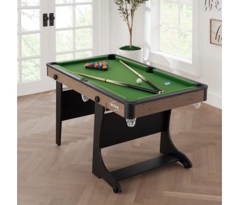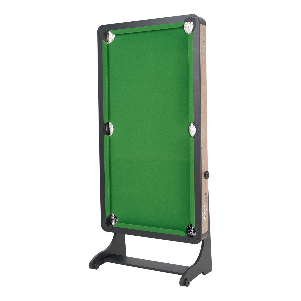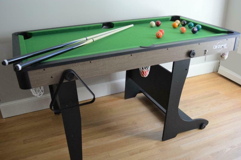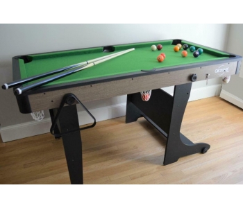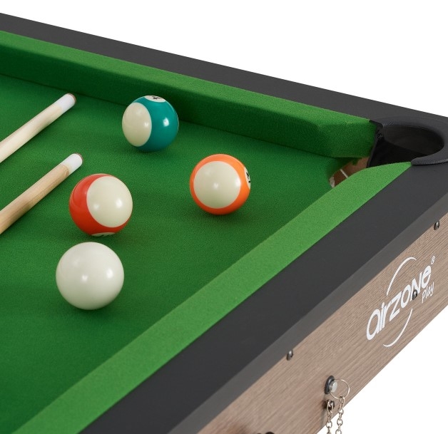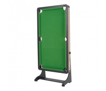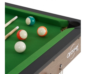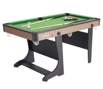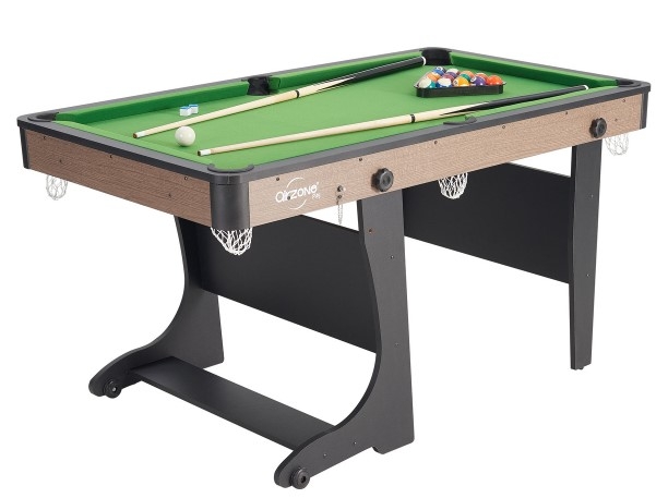 Новий розмір столу для американського пула- 5 футів. Якщо Вашим хобі є більярд, і Вам хотілося б, щоб більярдний стіл був завжди під рукою - тоді Вам просто необхідний складаний більярдний стіл Airzone. Незважаючи на свої невеликі розміри, він доставить багато радості Вам і Вашим дітям. Завдяки своїй компактності і легкості його можна брати на дачу або в офіс. У невеликій квартирі він не займе багато місця, а його зберігання не завдасть Вам ніяких турбот. Досить просто скласти опори столу і відсунути його до стіни до наступного сімейного міні-турніру. Стіл укомплектований усіма необхідними аксесуарами для гри в американський пул. Зручне регулювання ніг, як вибрати оптимальні виставити рівень столу.