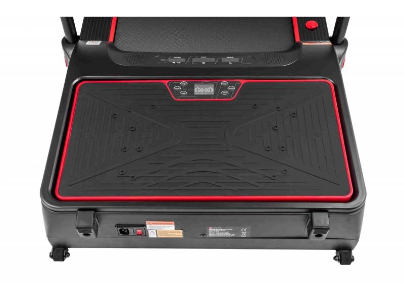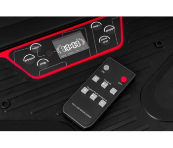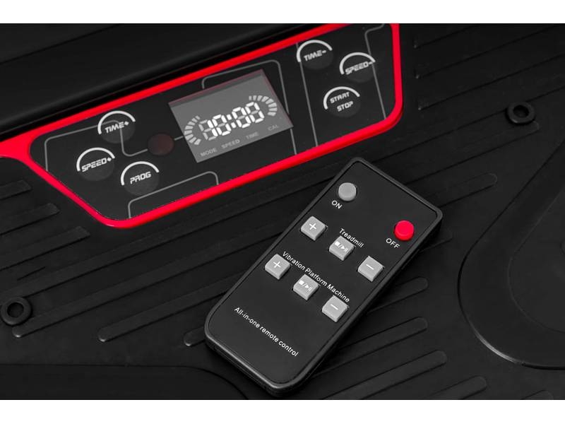 Налаштування бігової доріжки і вібраційної платформи легко міняти за допомогою пульта дистанційного керування. Крім того, параметри тренування на віброплатформе можна встановити за допомогою вбудованого комп'ютера, який відображає час (макс. 20 хв.), Швидкість (50 рівнів), калорії і обрану програму тренування.
