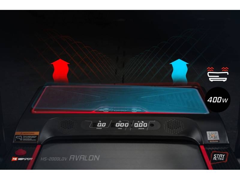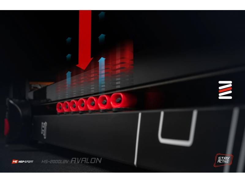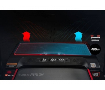 З HS-2000LBV Avalon можна впевнено тренуватися, не турбуючись про перевантаження суглобів. Ця модель оснащена 7-ю амортизаторами, які знижують ризик травмування і запобігають удари.Также, завдяки амортизаторам, бігова доріжка працює з мінімальним шумом, що особливо важливо в багатоквартирних будинках.
