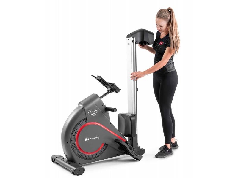 Магнітний гребний тренажер HS-095R Spike з матом під тренажер в комплекті - відмінне обладнання для всебічної тренування на витривалість. Це допоможе вам зміцнити м'язи спини, плечей і ніг. Система магнітного опору вагою 16 кг забезпечує безперебійну роботу тренажера. Багатофункціональний тренажер з підставкою для мобільного телефону можна виконувати різні вправи на різних рівнях. Комфорт використання підвищується завдяки ергономічному сідлу і нековзними платформами для ніг з ременями безпеки. Гребний тренажер оснащений системою швидкого складання і транспортними роликами, що забезпечують повну мобільність обладнання. Максимальна вага користувача становить 150 кг.