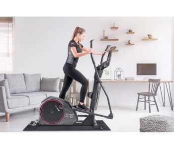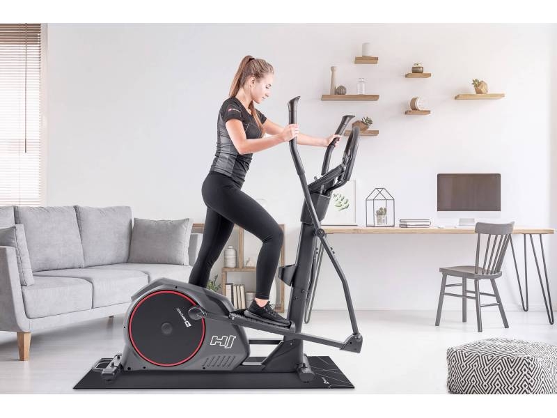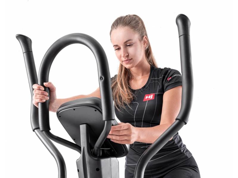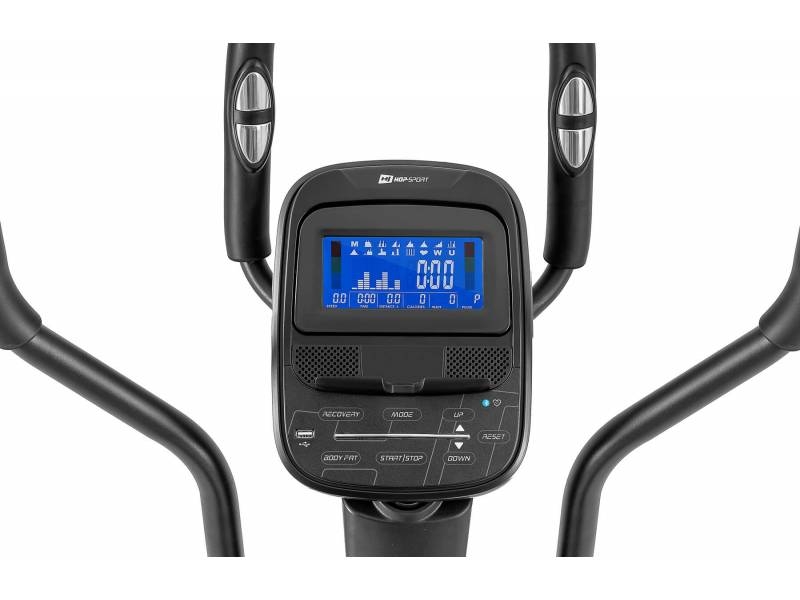 Електромагнітний еліптичний крос-тренажер HS-095C Moon з матом по тренажер - це сучасний пристрій для занять фітнесом вдома. Вправи на цьому обладнанні покращують ваш стан і зміцнюють м'язи, не напружуючи суглобів. Масивна складна конструкція вагою 81 кг і вирівнюють ніжки роблять цю модель надзвичайно стійкою. Ширина кроку стопи становить всього 8 см, що забезпечує безпечне положення колін під час тренування. Система магнітного опору і обертові ролики відповідають за безперебійну роботу обладнання. Багатофункціональний комп'ютер з Bluetooth 4.0 і підставкою для планшета дозволяє проводити різноманітні інтерактивні тренування.