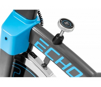 Велотренажер Echo використовує систему маховика 18 кг. Завдяки цьому пристрій працює дуже тихо. Навіть під час інтенсивних тренувань ви можете слухати улюблену музику, подкасти або дивитися фільм - під дисплеєм знаходиться тримач для телефону або планшета. Безпека тут забезпечується внаслідок вільного ходу - коли ви раптово припиняєте крутити педалі, маховик буде продовжувати обертатися "за інерцією", поки не сповільниться і, нарешті, не зупиниться. Завдяки цьому ви відчуєте себе на традиційному велосипеді і при цьому уникнете травм, тому що гальмування не відбувається раптово.