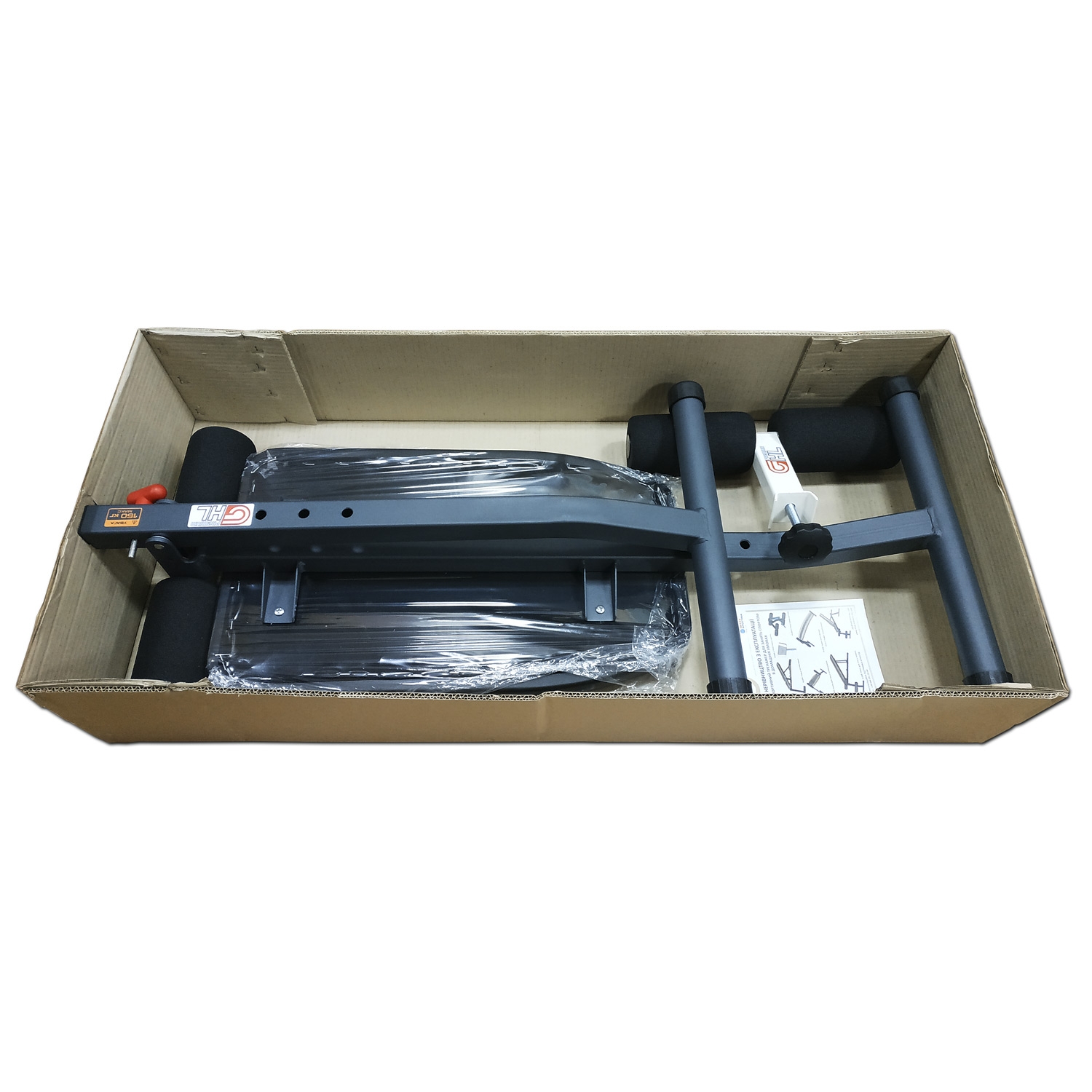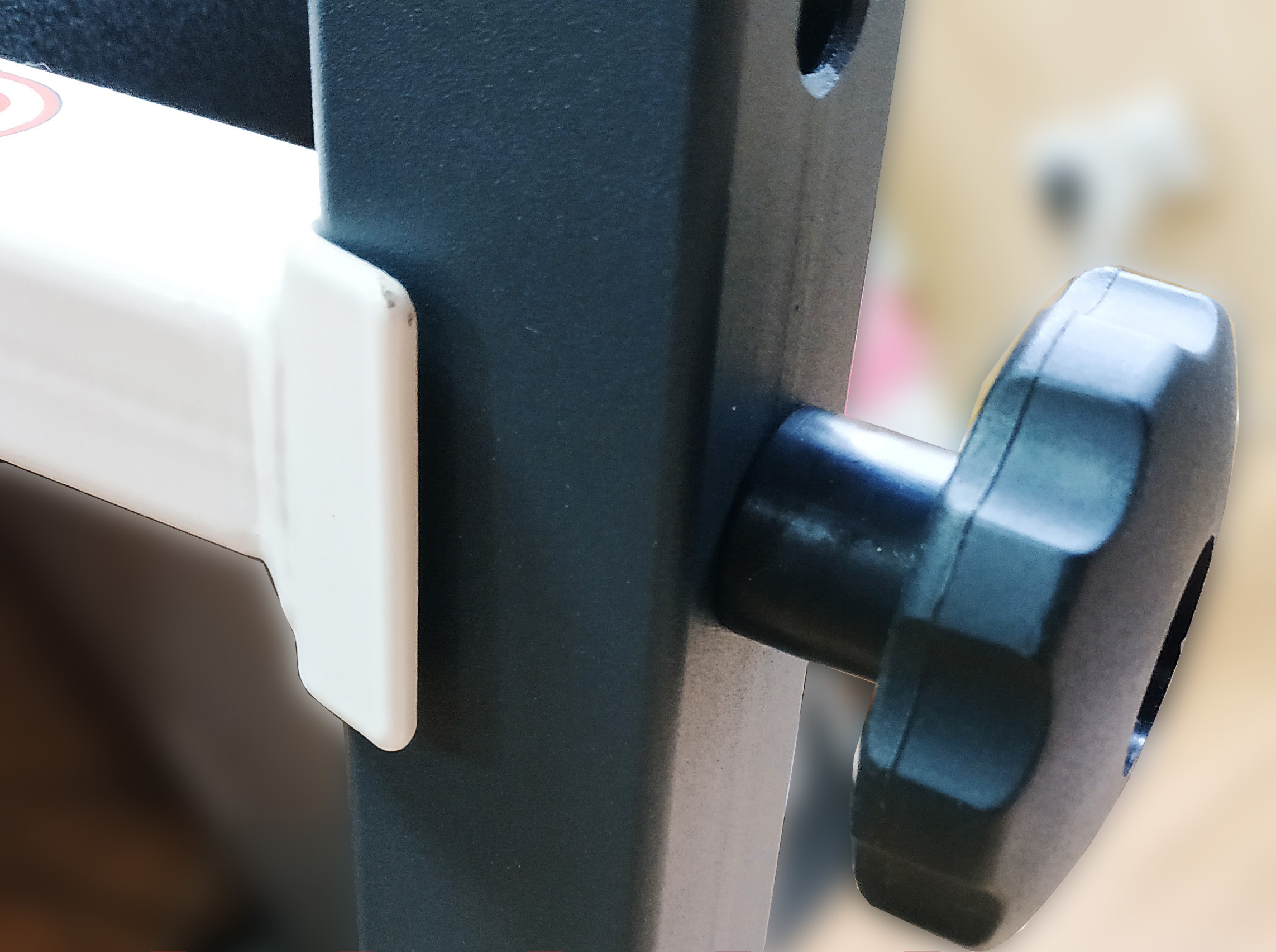 - - Ви можете переналаштувати лаву з одного положення в інше, виконуючи перестановку режимного валика для ніг з однієї стійки на іншу (процес займає близько 20 секунд).