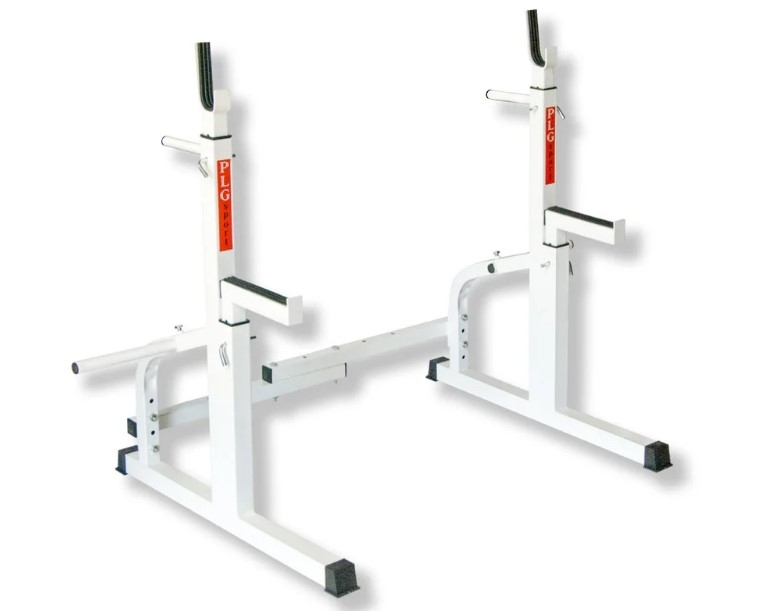 На стійках є страхувальні упори для штанги, в разі одиночних тренувань з великими вагами. Страхувальні упори можна зняти і вони не будуть заважати, в разі якщо стійки зібрані не на максимальну ширину.