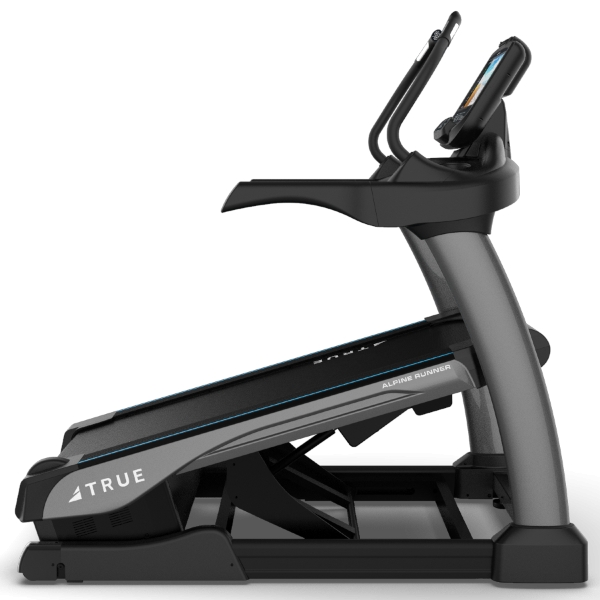 True Alpine Runner - унікальна професійна бігова доріжка з максимальним кутом нахилу 30%. Наукові дослідження показали, що тренування на біговій доріжці з великим кутом нахилу набагато ефективніше і сприяє спалюванню більшої кількості калорій. True Alpine Runner C діапазоном кута нахилу від -3% до 30% — це нове слово в кардиотренировках. Запатентована система нахилу спеціально розроблена для зменшення навантаження на двигун і його зносу. Система амортизації True Soft System™ і двостороння ламінована 25 мм дека знижують вплив на суглоби набагато ефективніше, ніж на інших бігових доріжках. Вертикальні рукоятки забезпечують підтримку навіть при максимальному ухилі. Нові монументальні тренування дозволяють користувачеві піднятися на висоту всесвітньо відомих визначних пам'яток, таких як арка в Сент-Луїсі, Ейфелева вежа, гора Еверест та інші.