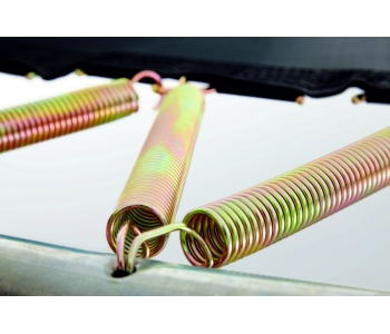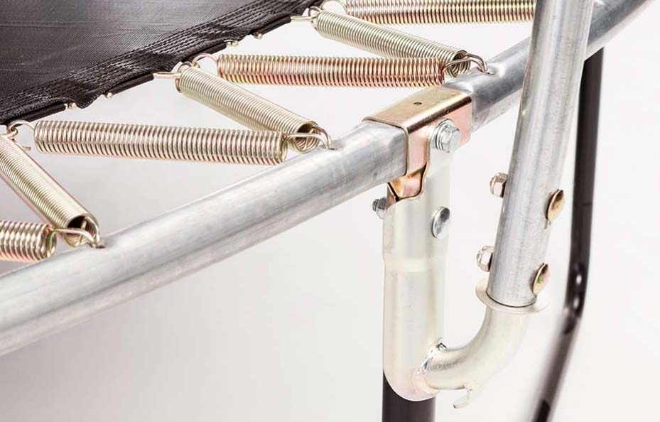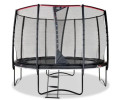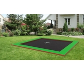 Батут виконаний з габаритами 520х345 см, висотою рами 90 см і забезпечується еластичною і щільною сіткою безпеки. Для створення захисного мату використовується поліпропілен.