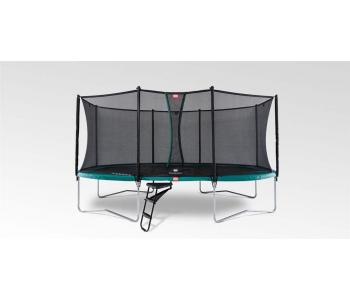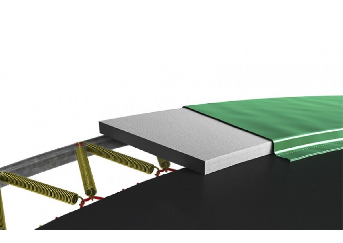 Батут Berg Grand Favorit Regular 520 Green + захисна сітка Safety Net Comfort (30.25.15.70 + 35.74.63.00) 30.25.65.70 формує найкращі умови для того, щоб на відкритому повітрі діти і навіть дорослі могли тренуватися, розвивати спортивну вправність і зміцнювати здоров'я. Великий простір стрибкової зони овальної форми дозволяє здійснювати стрибки з розгону, що добре позначається на їх висоті, а оснащення конструкції 126 пружинами Goldspring Solo довжиною 19 см в комбінації з надійної рамою з металу забезпечить хорошу стійкість всієї батутними установки в цілому і її здатність витримувати до 120 кг навантаження масою користувача.
