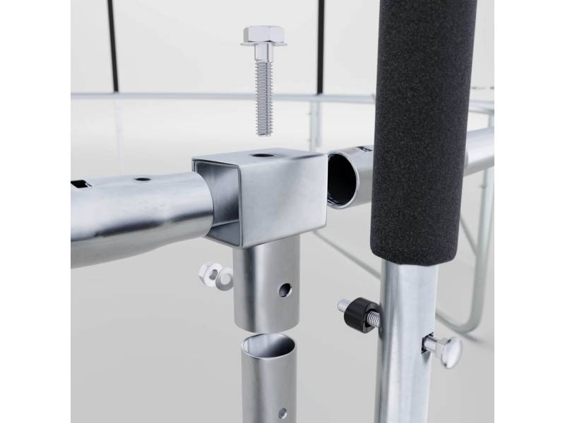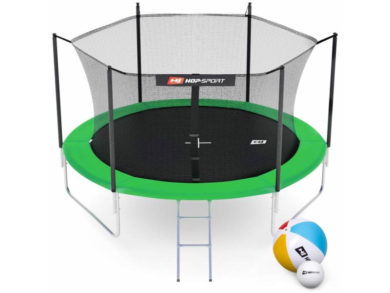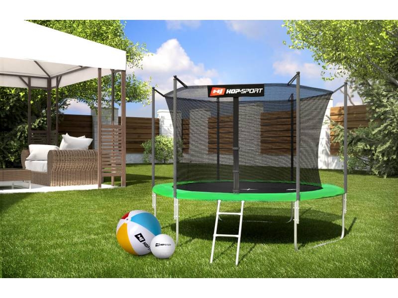 Батут Hop-Sport досить простий в установці - досить лише зібрати каркас, натягнути полотно і зафіксувати кріплення. Всі елементи конструкції виконані з високоякісної загартованої оцинкованої сталі, що забезпечує їх надійність протягом мінімум декількох сезонів. Дуже міцна захисна сітка гарантує безпеку під час гри.